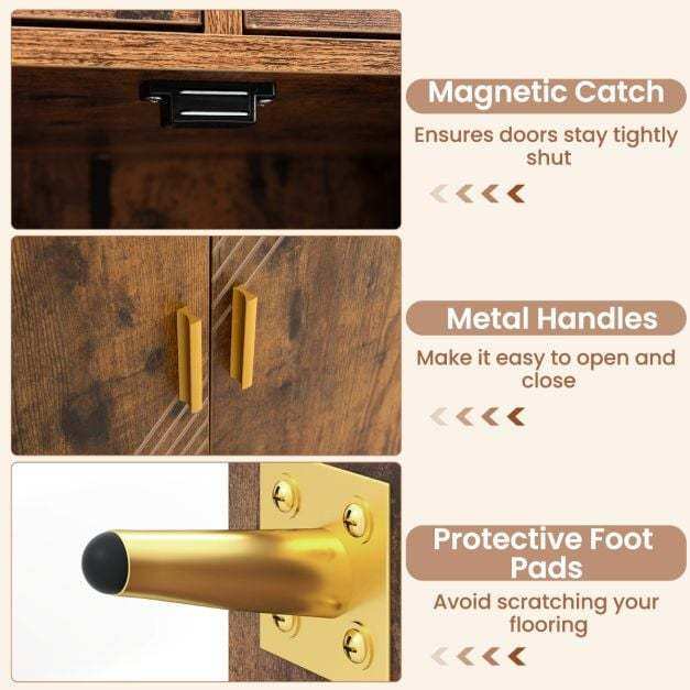 Sturdy Construction: Supported by sturdy metal legs with anti-slip foot pads, this kitchen storage cupboard promises not only longevity but also stable and reliable support for your items.