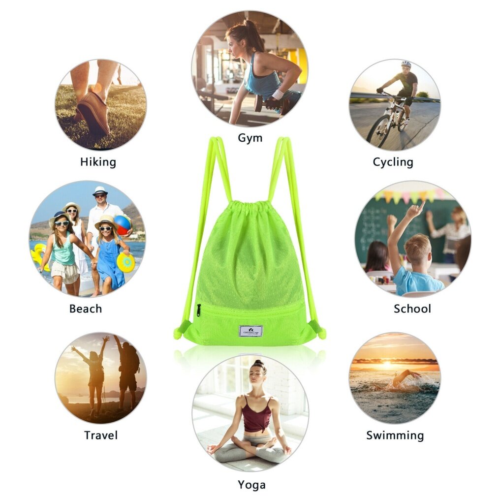● Large Capacity: This premium sackpack comes with spacious space for you to put different items, such as clothes, towels, water bottles, laptop and books, etc. Meanwhile, the front pocket with zipper is suitable for sunglasses and tissues, making them within reach. And you can store your phone, key and other small valuables on the inside pocket to prevent any pickpockets.