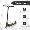 Designed for kids 10 years and older, this pro stunt scooter is perfect for beginners and teens eager to explore the world of freestyle scootering. The scooter features 2 high-rebound PU wheels supported by ABEC-7 bearings, designed to offer a smooth glide over a variety of street surfaces. The wide aluminum deck provides ample foot space, ensuring a stable base for performing tricks and maneuvers. Equipped with a reliable handlebar, non-slip grips and rear brake, this stunt scooter can offer your kids a safe ride. The scooter's structure is secured with a 4-bolt clamp, adding to its overall stability and reliability. Moreover, the lightweight design makes it easy to carry and maneuver for young riders.
