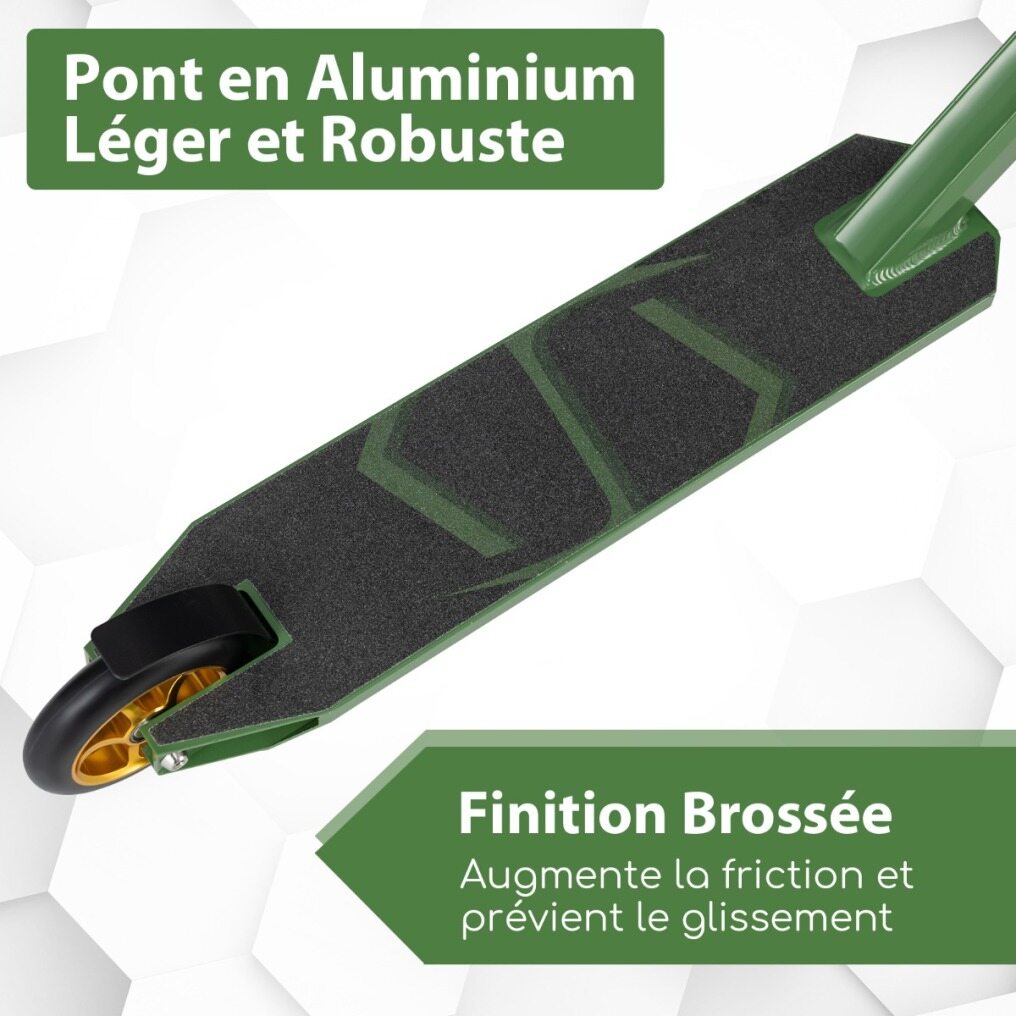 Wide Deck & Lightweight Design: This pro stunt scooter is equipped with a lightweight & sturdy aluminum deck, providing ample space for secure footing. The thoughtfully brushed finish increases friction and prevents slipping. Weighing only 3 kg, the scooter is easy to maneuver and carry.