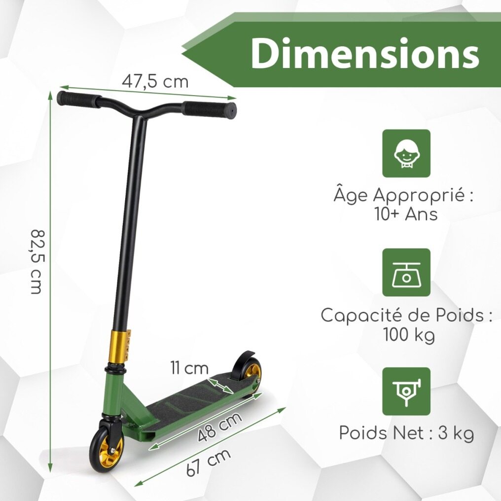 Ideal Gift for Beginners: This colorful and stylish stunt scooter is a fantastic choice for beginners and teens looking to get into scooter stunts and tricks. With a strong load capacity of up to 100 kg, it is perfect for kids aged 10 and above.