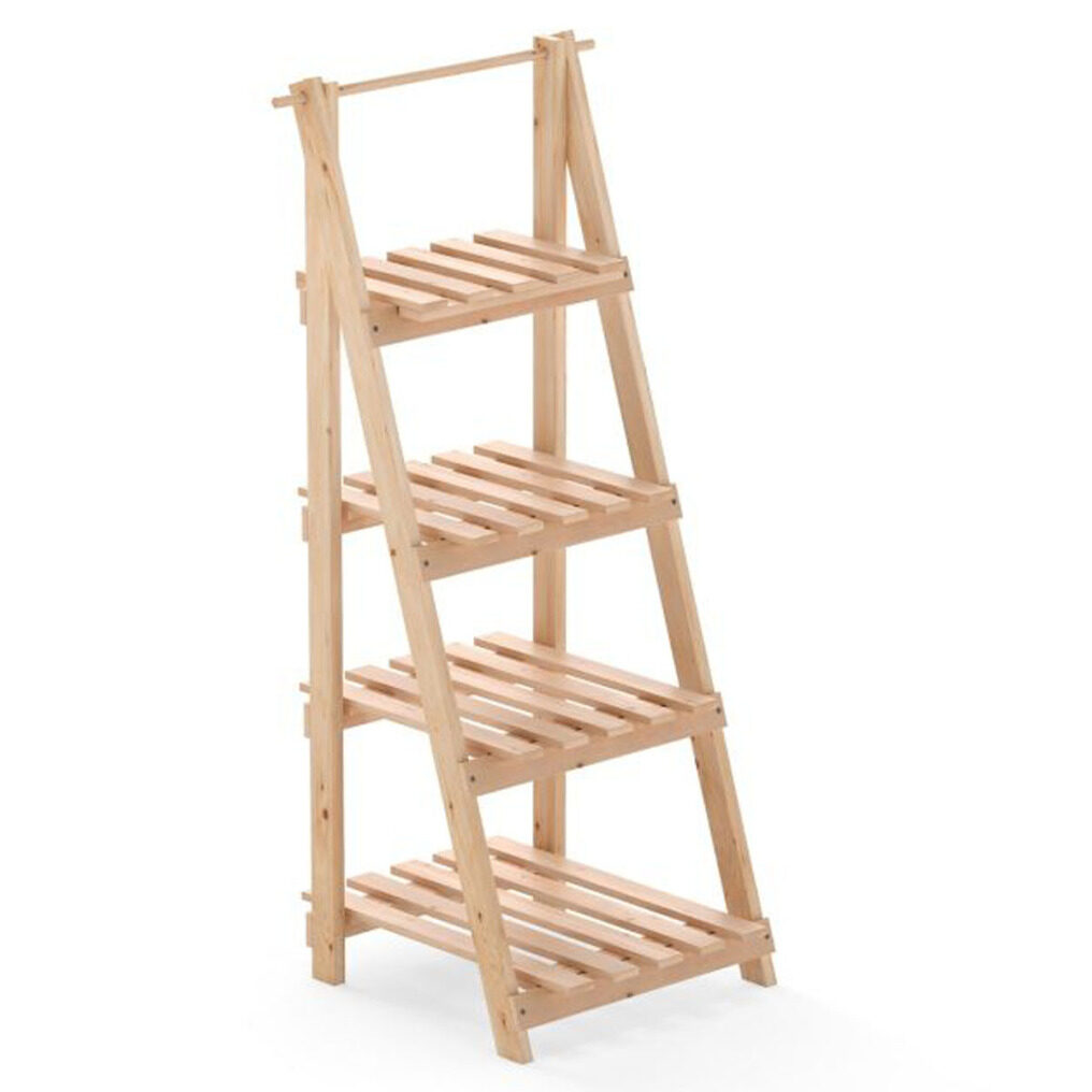 Our 4-tier plant stand measures 52 x 38 x 109 cm (L x W x H), including 4 strategically placed slatted shelves to maximise sunlight exposure, promoting the healthy growth of your plants. It is expertly crafted from solid fir wood, ensuring durability and resistance to warping. Ideal for both indoor and outdoor use, this versatile piece is not only for plants but also works beautifully as a display stand for decorations and books. Its foldable design allows for effortless storage and relocation, incorporating a built-in handle for easy transportation. Please note to protect the shelf from direct exposure to the elements to maintain its durability and beauty over time.