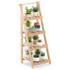 4-Tier Ladder Design: This wooden plant stand features 4 ladder-shaped tiers, allowing plants on each tier to absorb sunlight efficiently and grow upwards. In addition, its stable triangular structure enhances safety by preventing wobbling or tipping.