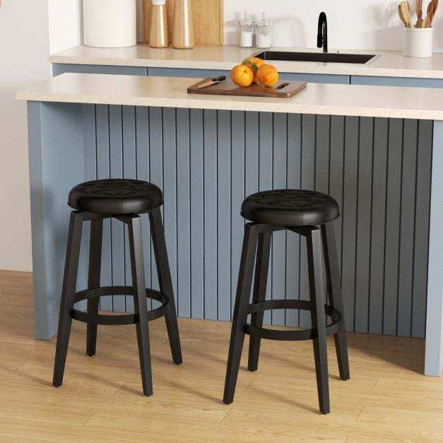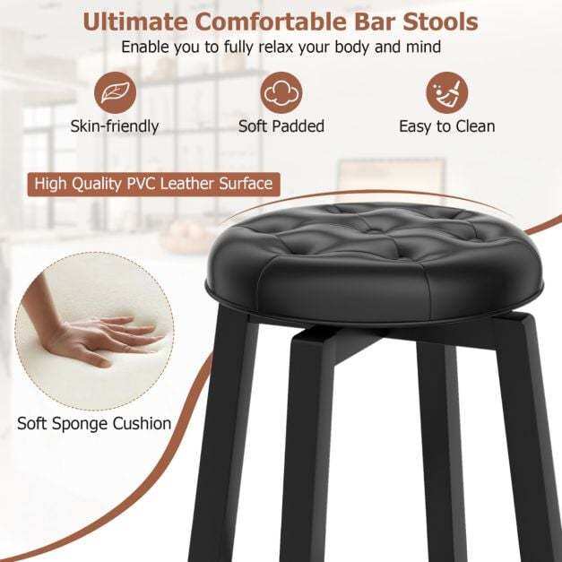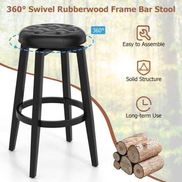 Reliable Rubber Wood Frame: Crafted with solid rubber wood frames, these swivel bar stools guarantee exceptional durability. The strong connections ensure that the stools are structurally stable and won't wobble. And each bar stool can provide a large weight capacity of up to 135kg.