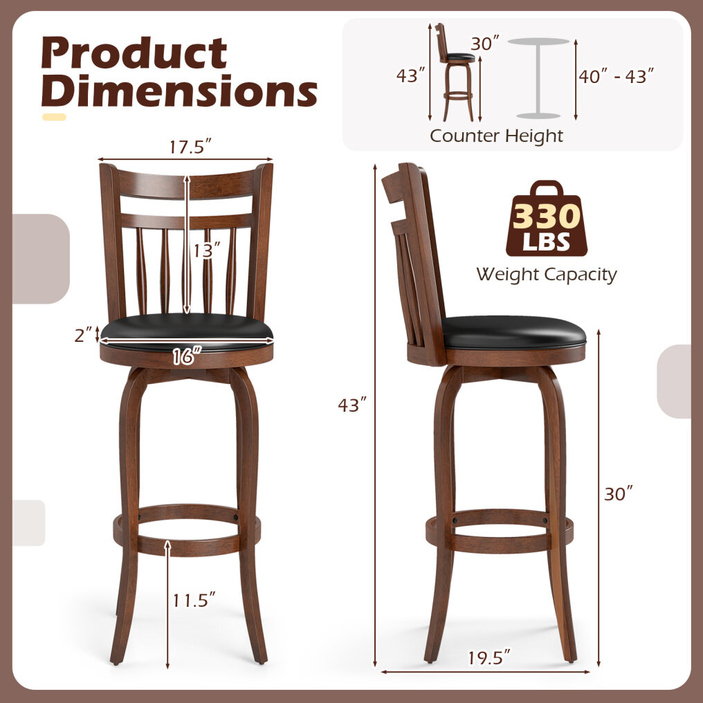 ● Ergonomic Comfort: The swivel bar stools are designed with curved backrests that provide excellent support for your spine. Additionally, the wrap-around footrest cradles your feet comfortably from every angle.