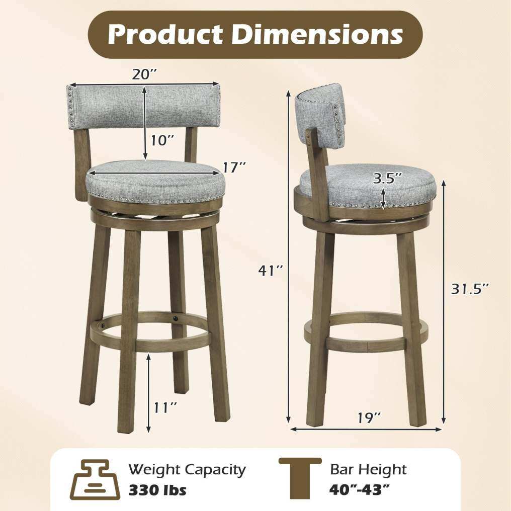 ● Elegant Styling and Ideal Height: Accented with exquisite nailhead trim, the upholstered bar stool adds a touch of sophistication and style to any kitchen island, dining area, or home bar. With a seat height of 31.5"/27", it is compatible with counter height tables (not included) ranging from 40" to 43"/35" to 39".