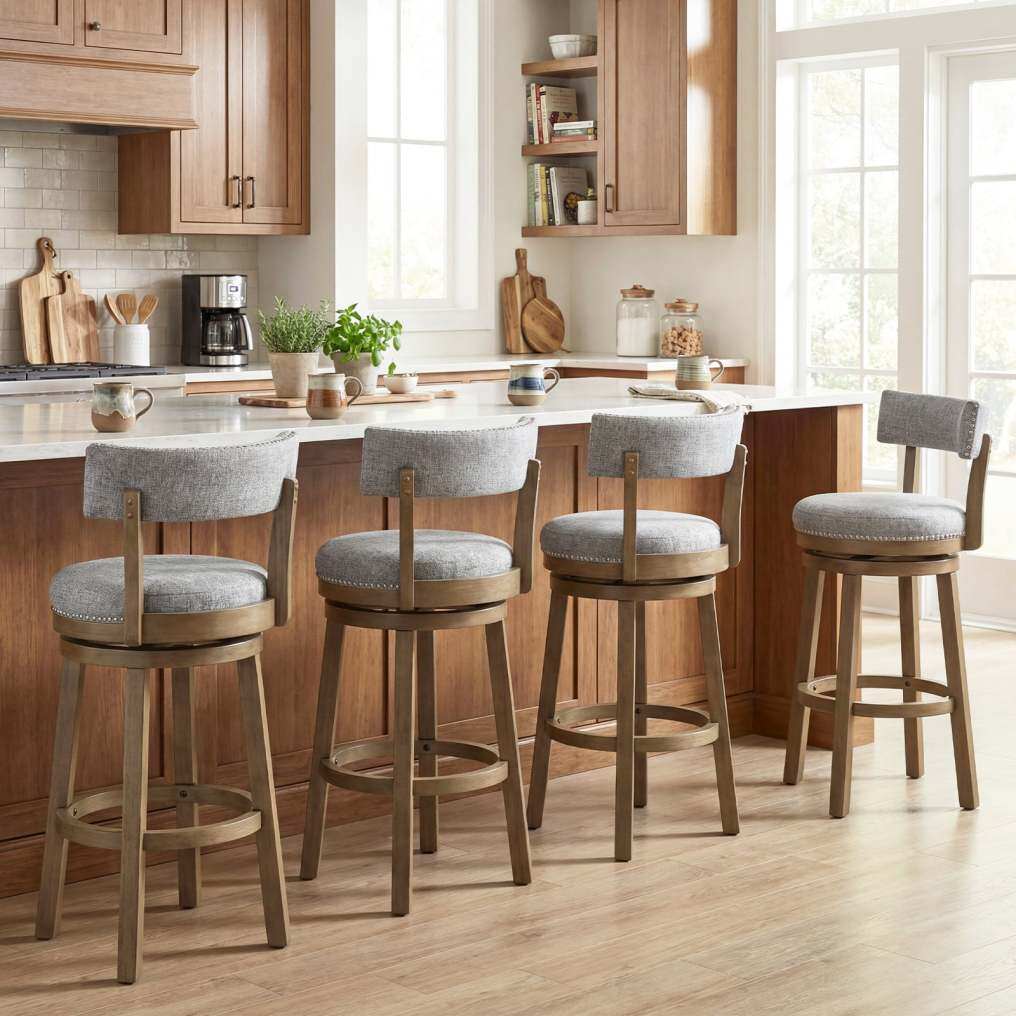● 360-Degree Swivel Seat: Equipped with a 360-degree swivel seat, this bar chair allows effortless rotation to engage with guests or reach around the kitchen with ease. It enhances social interactions and multitasking without needing to move the entire chair.
