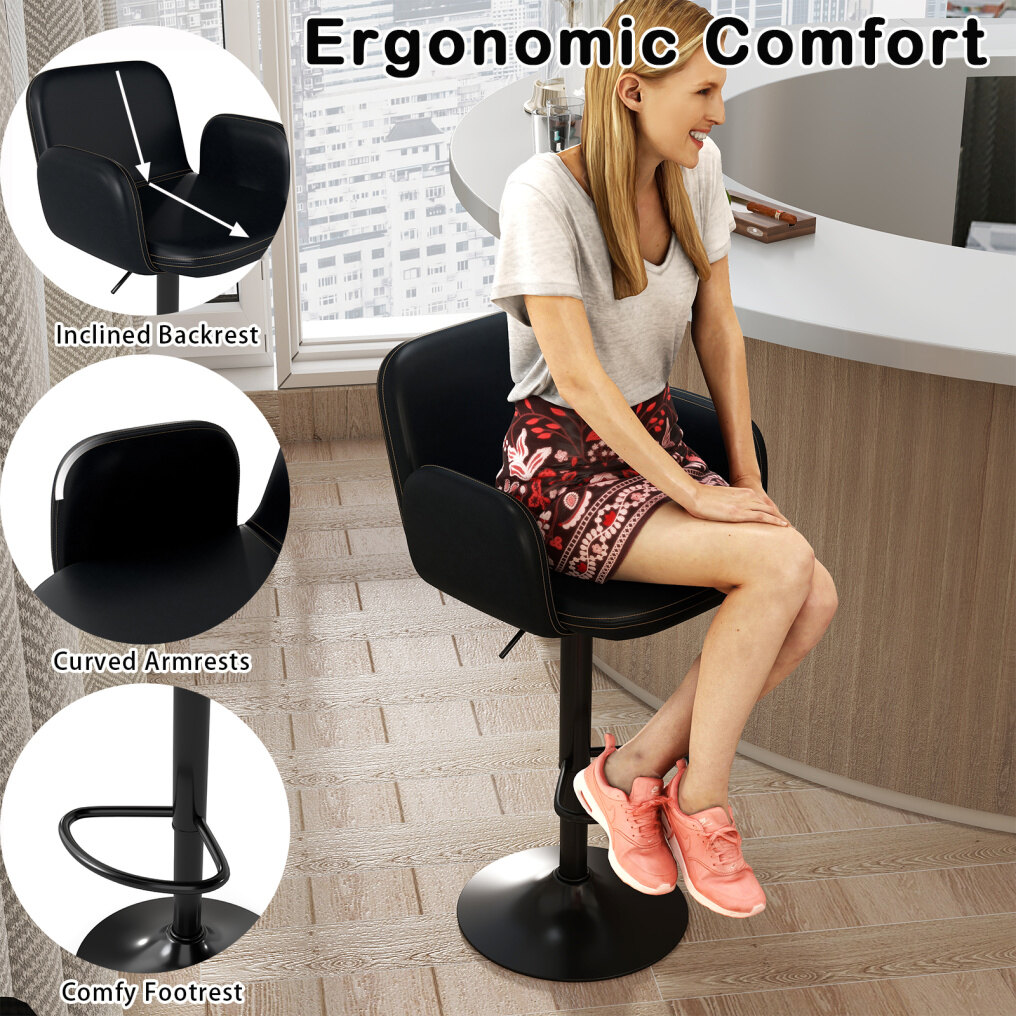 Ergonomic Comfort: Each padded bar stool features an inclined backrest, curved armrests, and a comfortable footrest designed ergonomically to support your posture. Enjoy extended sitting with enhanced comfort and support.