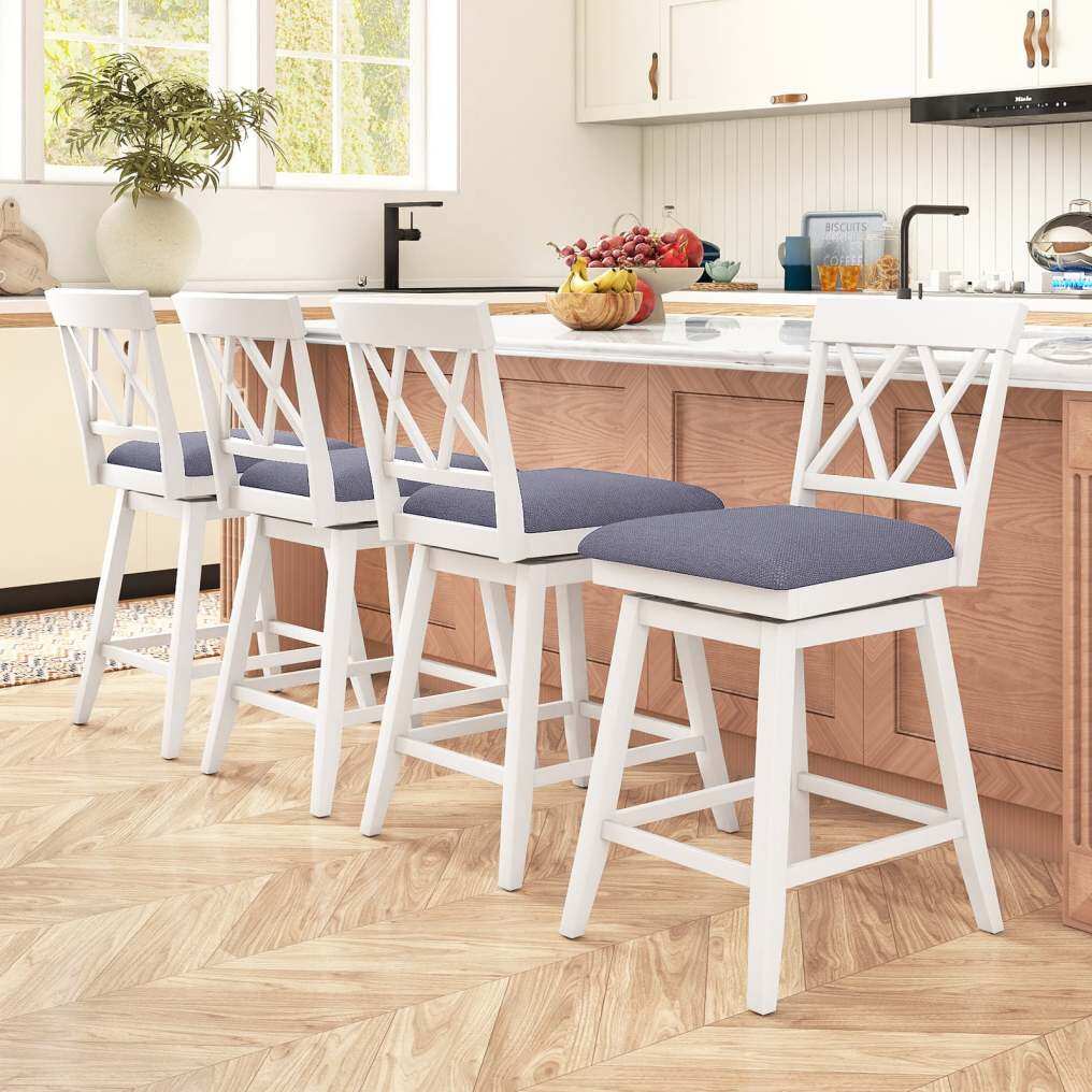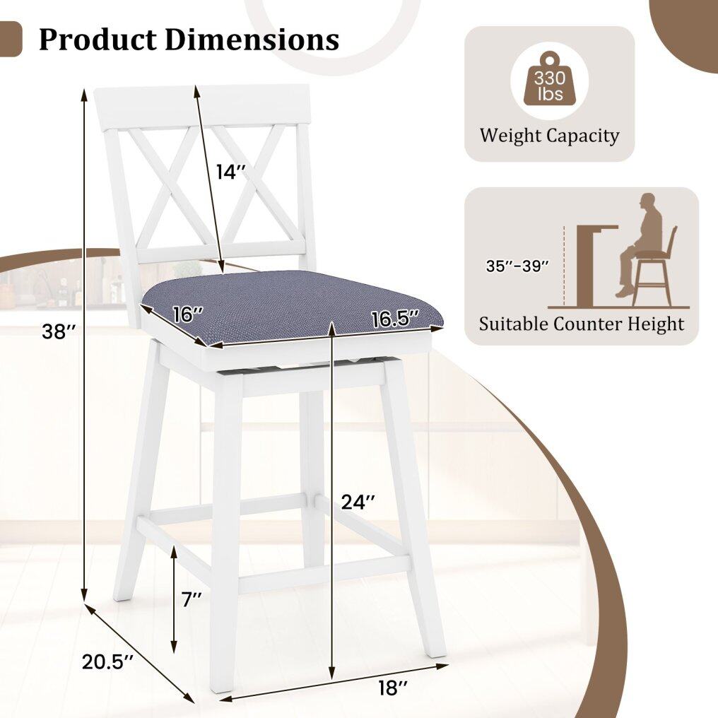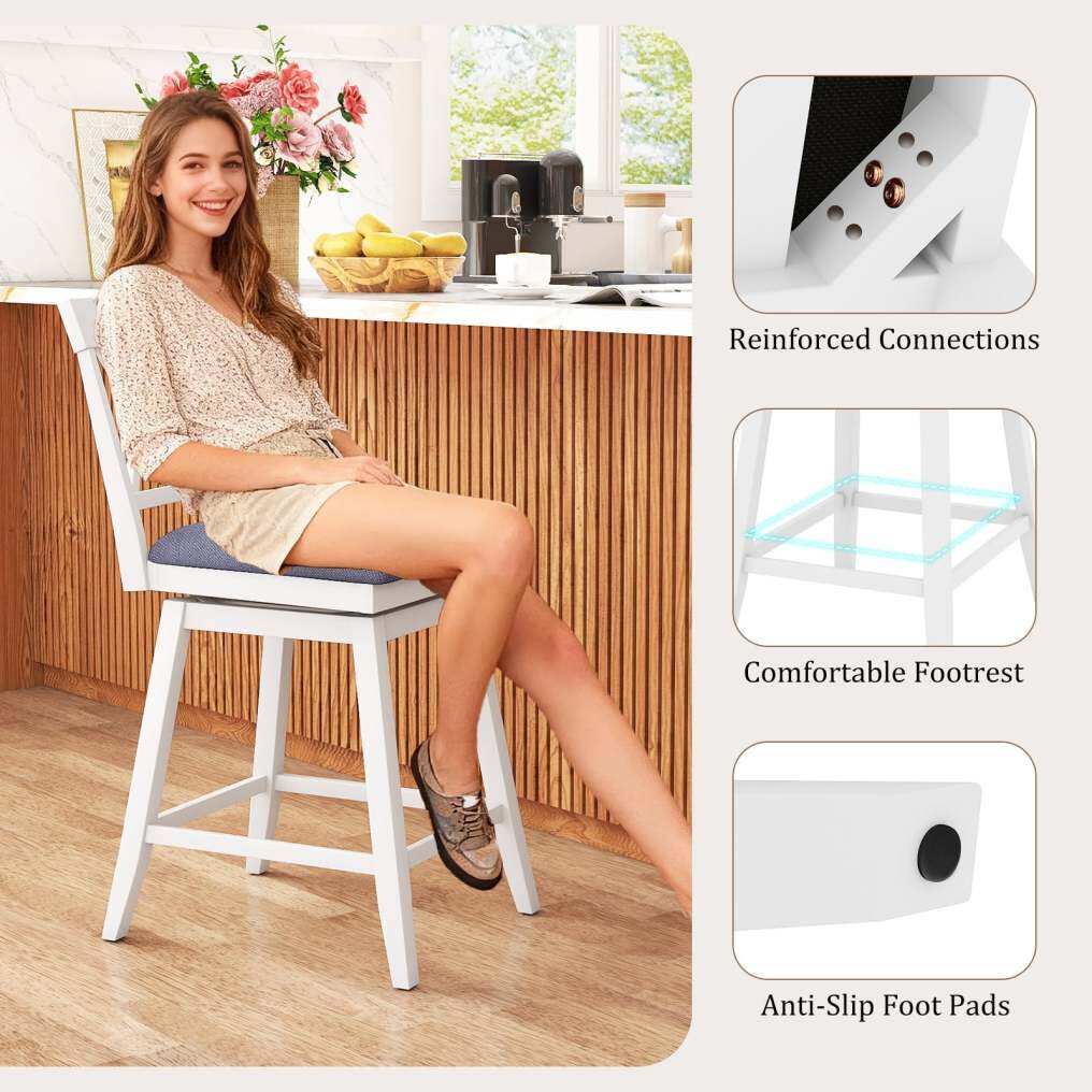 ● 360° Swivel Convenience: Each bar stool features a smooth 360-degree swivel mechanism, allowing effortless rotation in any direction. This makes them ideal for interacting with guests or easily accessing items placed on your countertop.