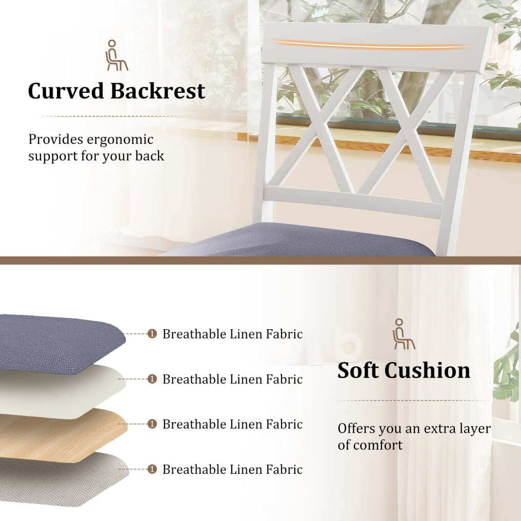 ● Layered Upholstered Comfort: The seats of these kitchen island chairs are designed with multiple layers, including breathable linen fabric, high-density sponge, sturdy engineered wood, and non-woven fabric base. This combination ensures a long-lasting seating pleasure.