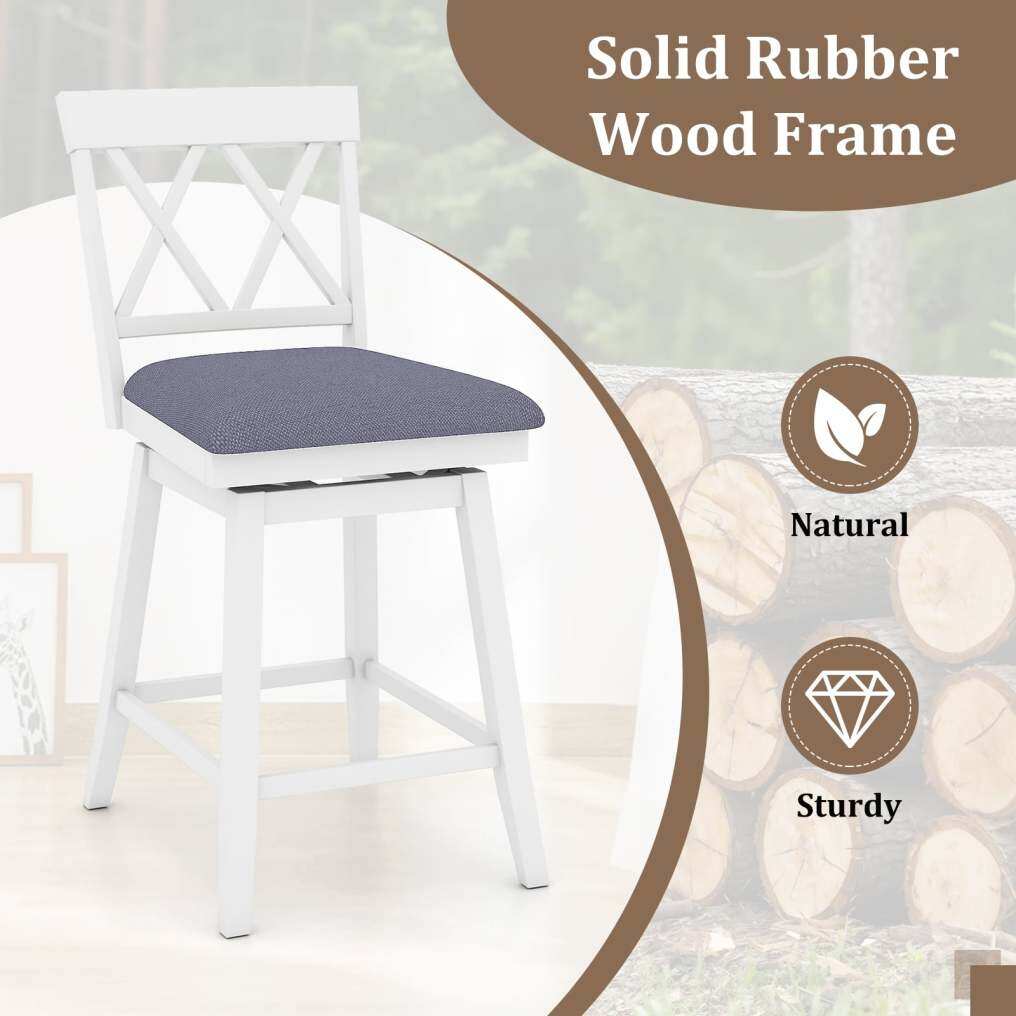 ● Solid Rubber Wood Frame: Supported by a sturdy rubber wood frame, the counter/bar height stools boast remarkable strength and longevity. The natural wood finish also contributes a warm, rustic charm to your space.