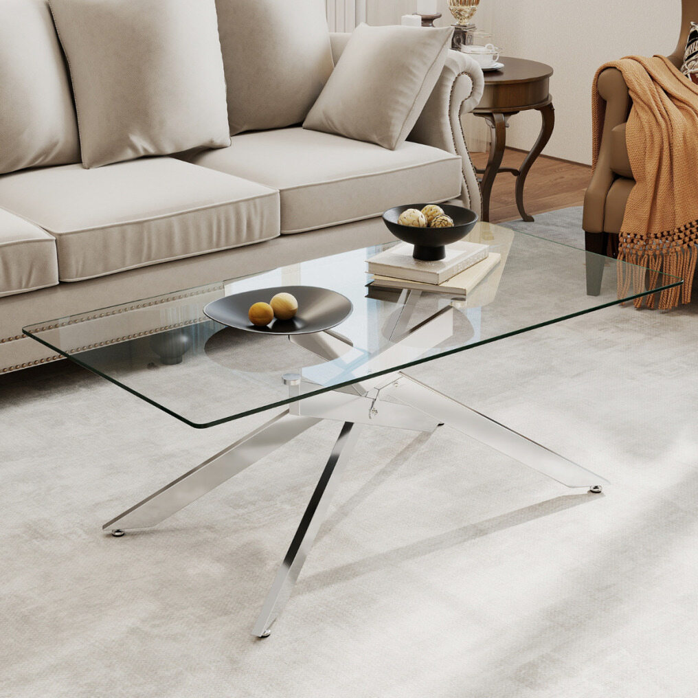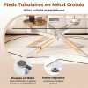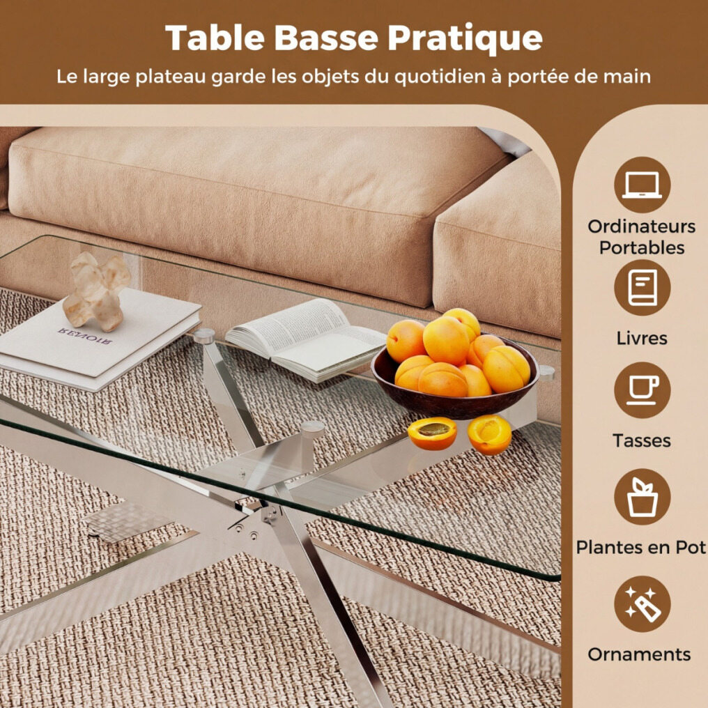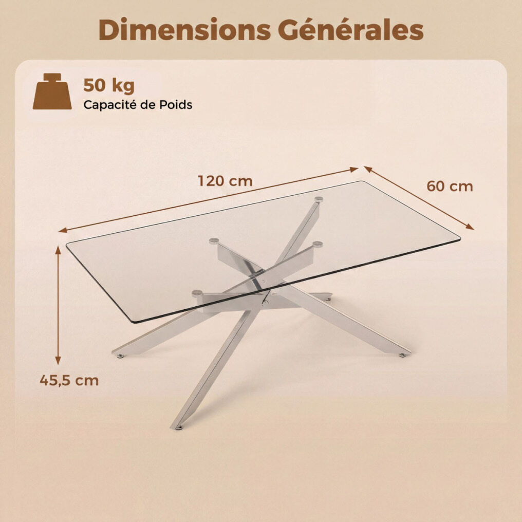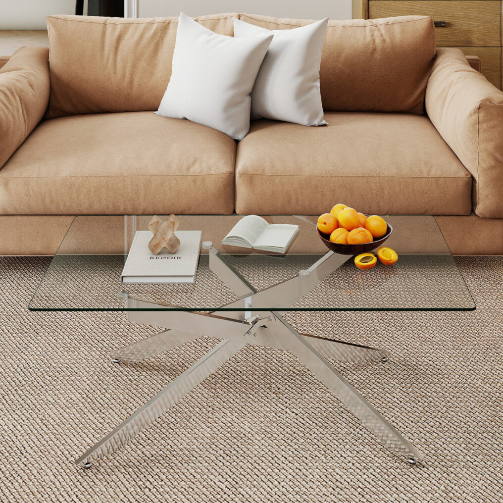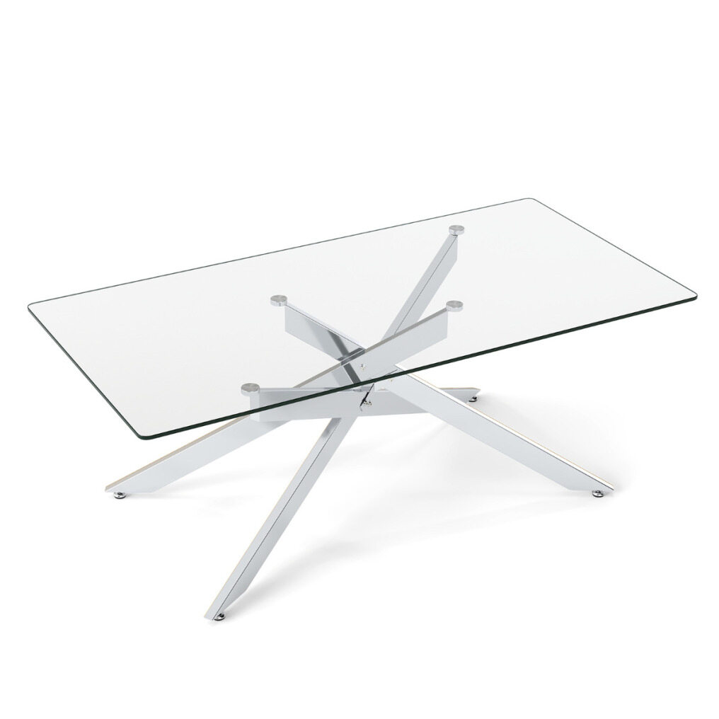 This rectangular table features an elegant tempered glass top, renowned for its strength and durability. For ample storage, its surface offers plenty of space for everyday items such as laptops, books, potted plants, and decorative objects. Furthermore, the crisscrossed tubular metal legs not only ensure reliable stability and even weight distribution but also add a distinctive aesthetic element. Equipped with adjustable feet, this side table guarantees stability even on uneven floors. Combining minimalist style with practical functionality, this side table is a perfect fit for contemporary interiors.