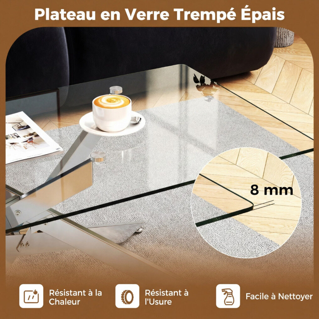 【Durable and Safe Glass Top】This coffee table features an 8mm thick tempered glass top that is heat-resistant, wear-resistant, and durable. Furthermore, the smooth, rounded corners enhance safety and prevent accidental bumps.