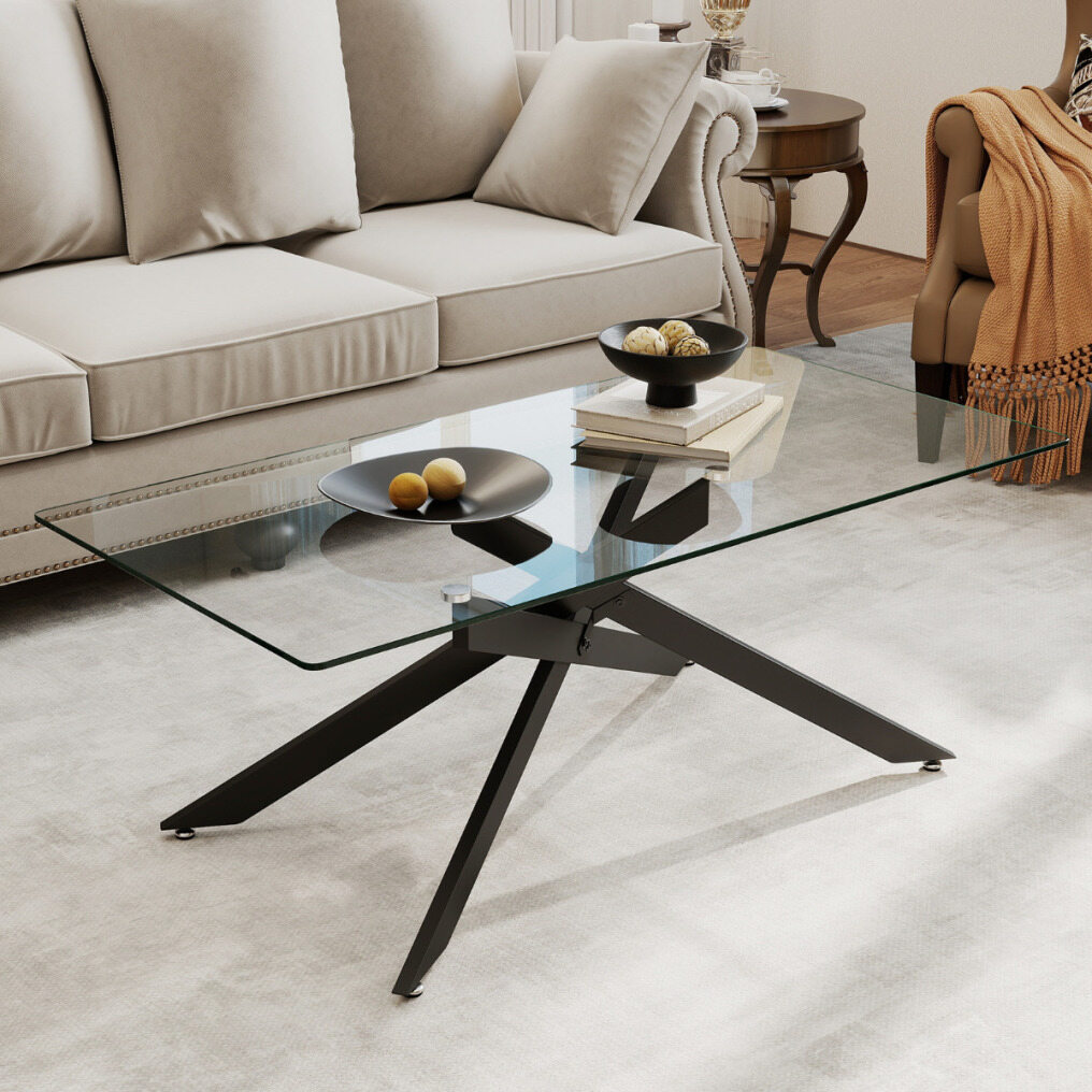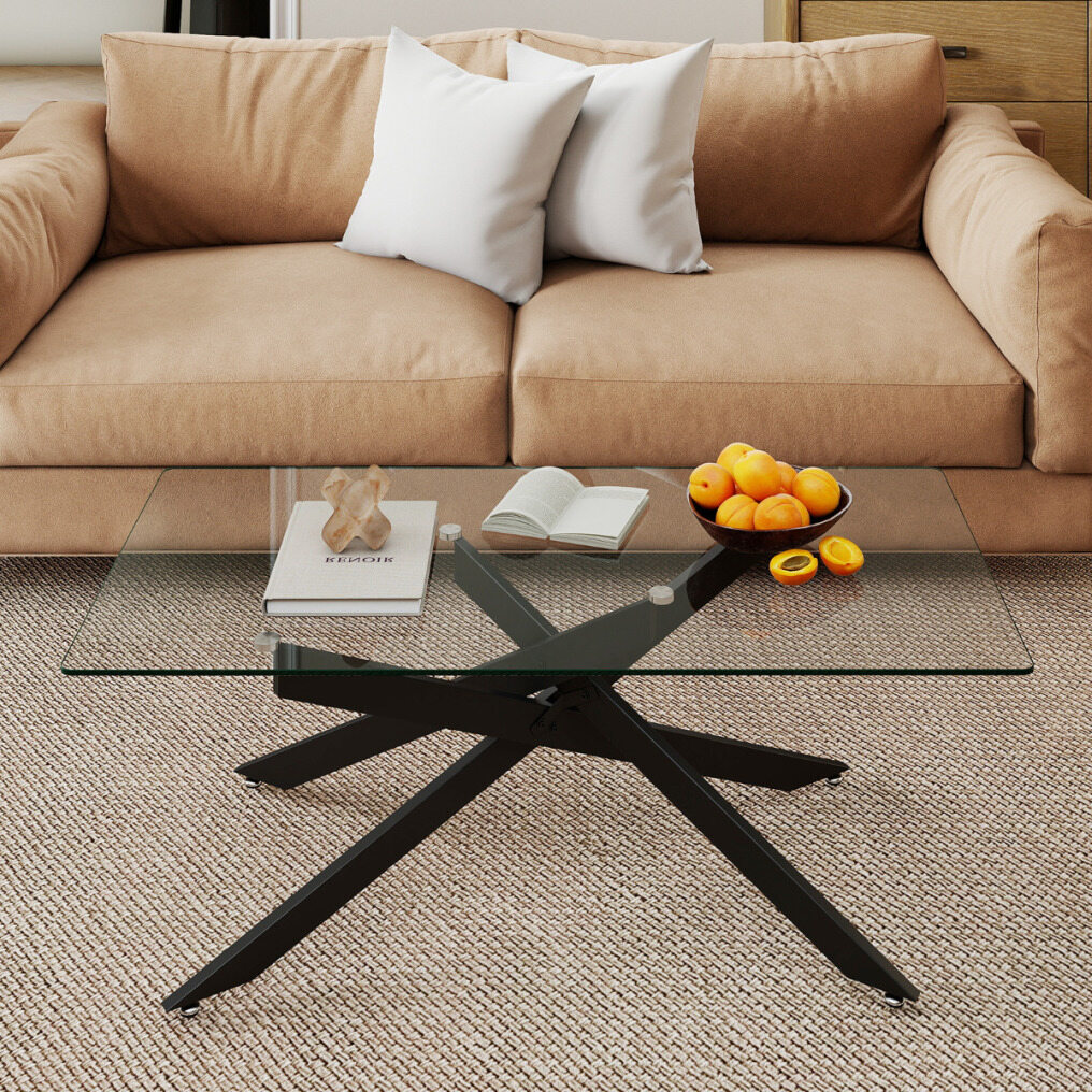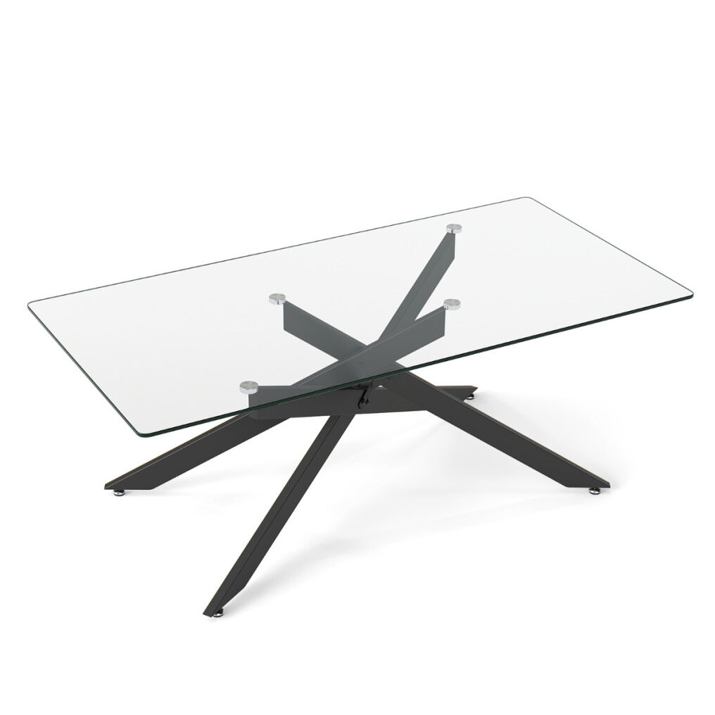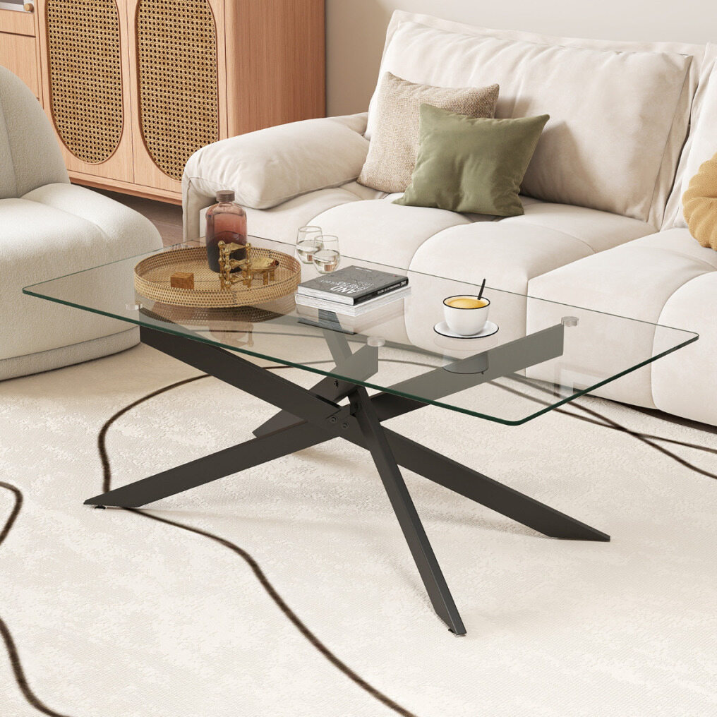 【Eye-Catching Centerpiece】Featuring a transparent top and crossed legs, this modern side table brings a light and airy feel to your room. Versatile, it's perfect for working, eating, or relaxing, whether in a living room, office, or apartment.