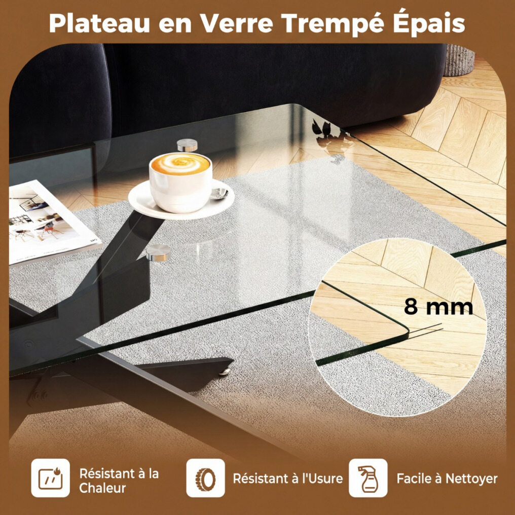 【Durable and Safe Glass Top】This coffee table features an 8mm thick tempered glass top that is heat-resistant, wear-resistant, and durable. Furthermore, the smooth, rounded corners enhance safety and prevent accidental bumps.