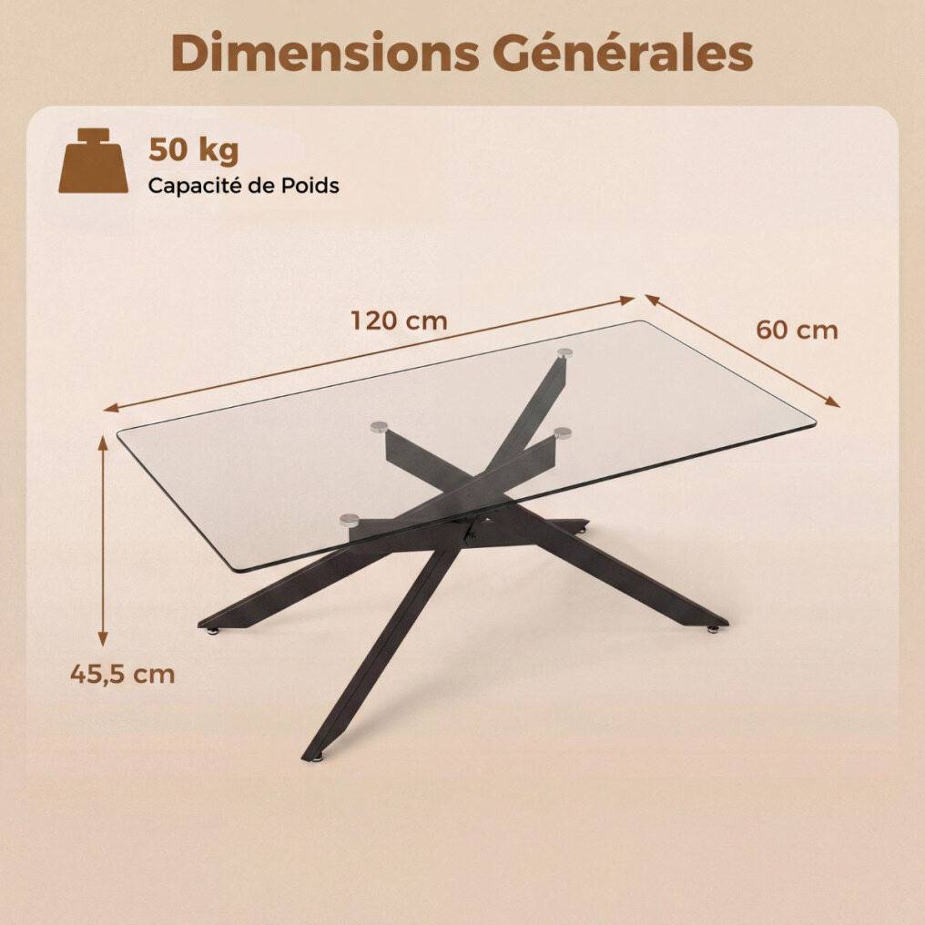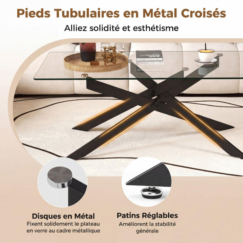This rectangular table features an elegant tempered glass top, renowned for its strength and durability. For ample storage, its surface offers plenty of space for everyday items such as laptops, books, potted plants, and decorative objects. Furthermore, the crisscrossed tubular metal legs not only ensure reliable stability and even weight distribution but also add a distinctive aesthetic element. Equipped with adjustable feet, this side table guarantees stability even on uneven floors. Combining minimalist style with practical functionality, this side table is a perfect fit for contemporary interiors.