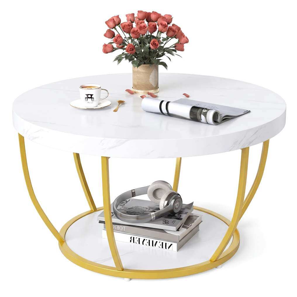 2-tier design with storage: Maximize functionality with the 2-tier design of this coffee table! It features a spacious tabletop and a lower shelf for convenient storage of books, laptops, cups, decorative items, and snacks within easy reach.