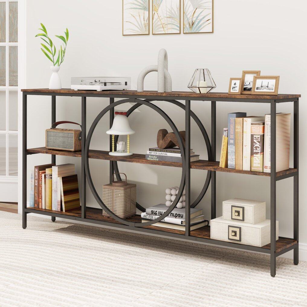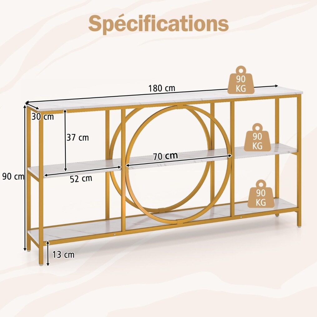 【Large Storage Capacity】Enjoy ample storage space with the expansive 3-tier design of this sofa table. The 180cm tabletop and 6 partitioned open shelves can easily accommodate your books, vases, photo frames, lamps and storage boxes, keeping you organized.