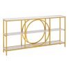 【Timeless Elegance】Enhance your space with our elegant console table, featuring a sleek metal frame that adds a touch of sophistication. The widened faux wood grain top easily blends with different room styles, enhancing your home decor.