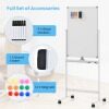 Robust construction and high-quality materials: Made from high-quality aluminum, our whiteboard features a solid frame and stand, complemented by a rust-protecting painted plate and a sturdy ABS protective cover that ensures long-lasting durability.