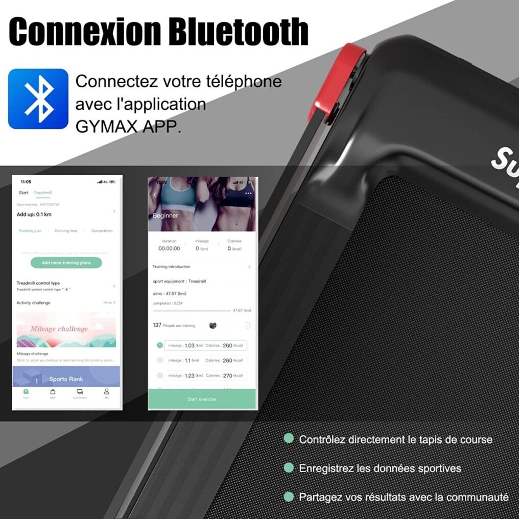 2 ways to display data: unlike traditional treadmills, our device not only has an LED display that shows various data such as time, speed, distance, calories and heart rate, but also allows you to connect the Gymax app and record data. In addition, you can use the Gymax app to control the treadmill, share your results with the community, compete with other users, etc.