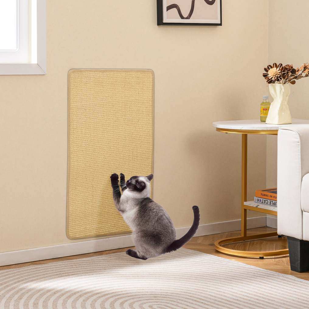 Our 2-piece scratching mat set measures 80 x 50 cm (L x W) each, providing ample space for multiple cats to scratch, play and relax. Made from natural, safe sisal, these mats are designed to withstand the toughest of scratches and protect your furniture from damage. The sturdy material ensures long-lasting use without leaving any mess or residue. Each mat has a non-slip latex backing and hook-and-loop adhesive strips to enhance stability, making it suitable for floors, walls and furniture. Not only do they protect your furniture, but they also act as a play area or resting area for your cat. An essential accessory for a cleaner, scratch-free home.