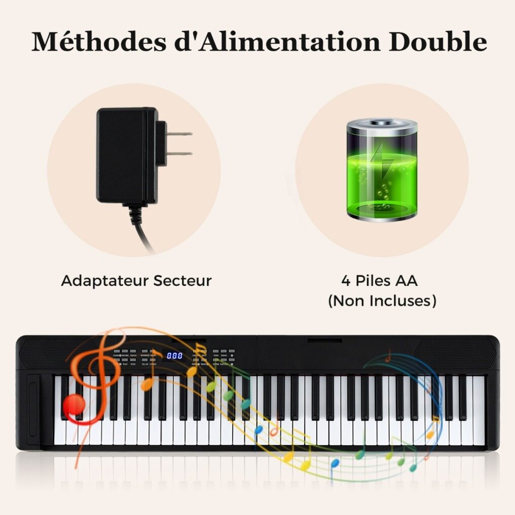【Foldable and Portable Design】This portable piano folds easily to a compact size of 48 x 22 x 12 cm. Weighing only 3.18 kg, it's perfect for travel. Powered by 4 AA batteries (not included) or an AC adapter, it's ideal for children.