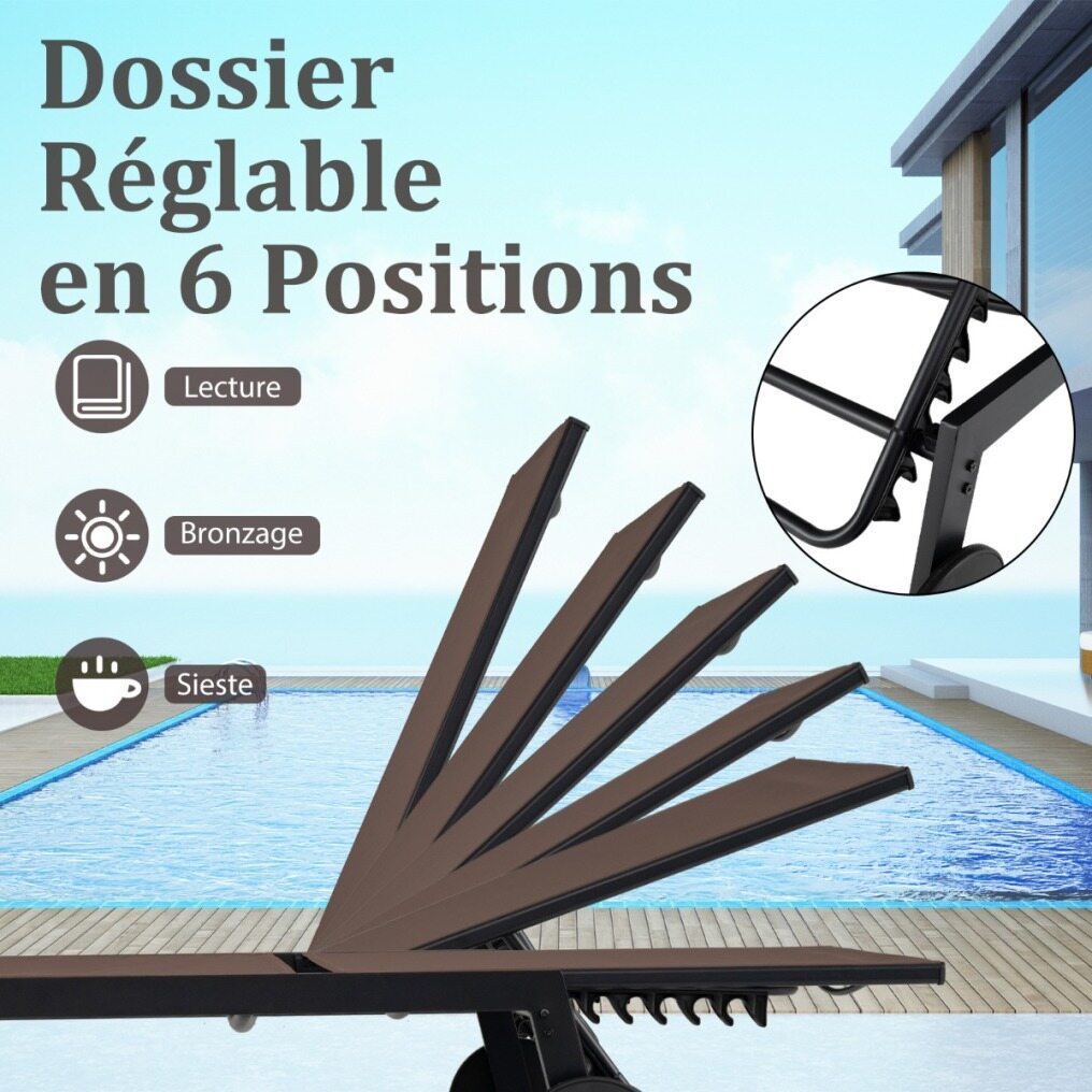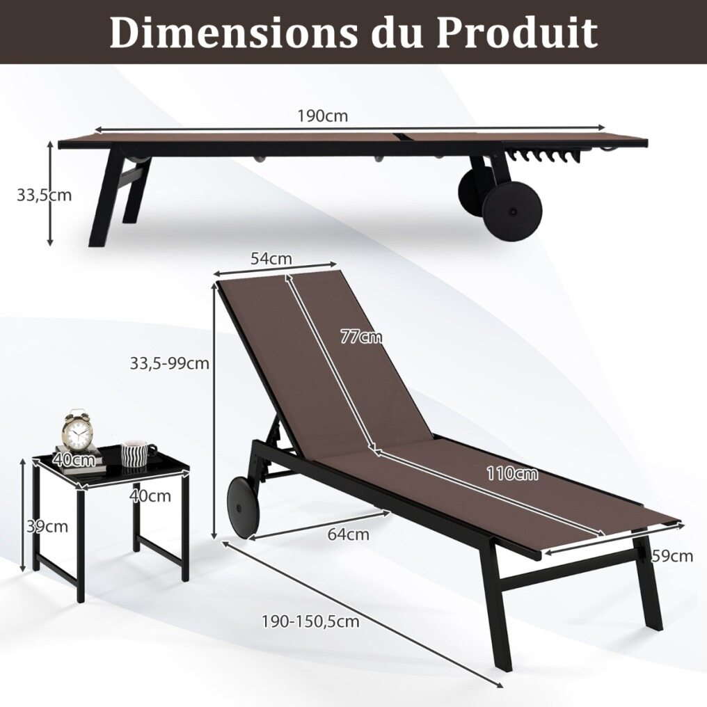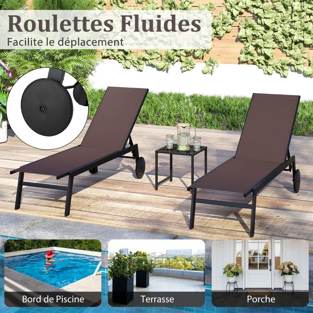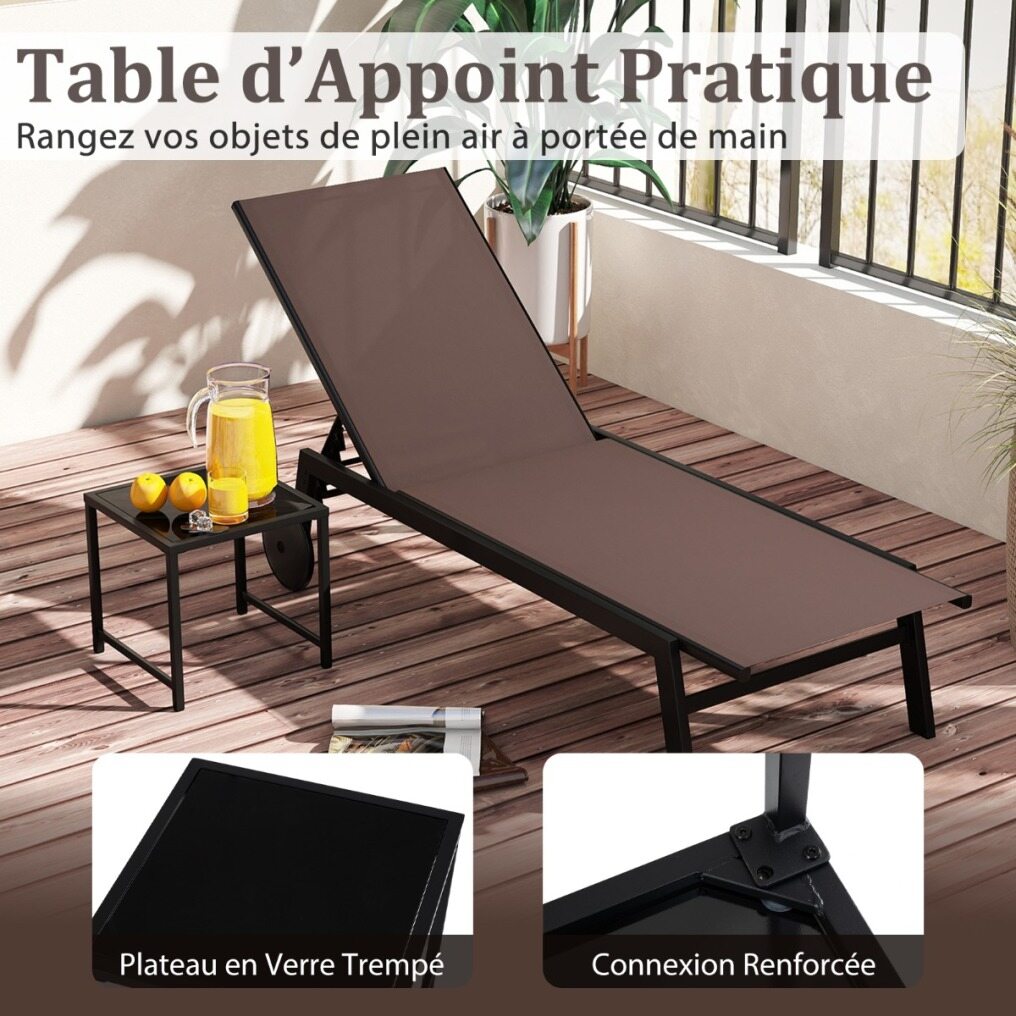 Dive into outdoor relaxation with our 2-piece patio lounge set! This outdoor lounger features a 6-position adjustable backrest, allowing you to find the perfect angle, whether you're sunbathing or reading by the pool. The breathable, quick-drying fabric promotes airflow, ensuring optimal comfort on warm days. Equipped with smooth-rolling wheels, the reclining lounger can be easily moved to your desired location, adding convenience to your outdoor leisure time. The included tempered glass coffee table provides a practical surface for your drinks and other items. Whether for your porch, garden, or poolside, this patio furniture set is a functional and stylish addition.