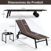 【Easy Mobility Thanks to Smooth-Rolling Wheels】Equipped with smooth-rolling wheels, this reclining patio lounge chair can be easily moved to your poolside, deck, or porch. Moving it to enjoy the sun or shade requires minimal effort, making your outdoor experience more enjoyable.