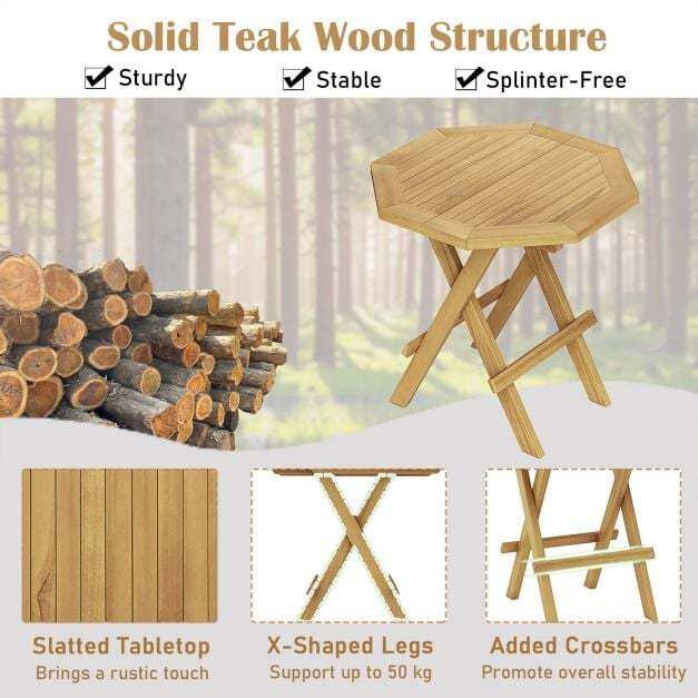 ● Natural Elegance: The natural grain of teak brings a touch of sophistication to your outdoor relaxing space. This octagon-shaped coffee table with exquisite details will serve as an attractive centerpiece to bring you much convenience.