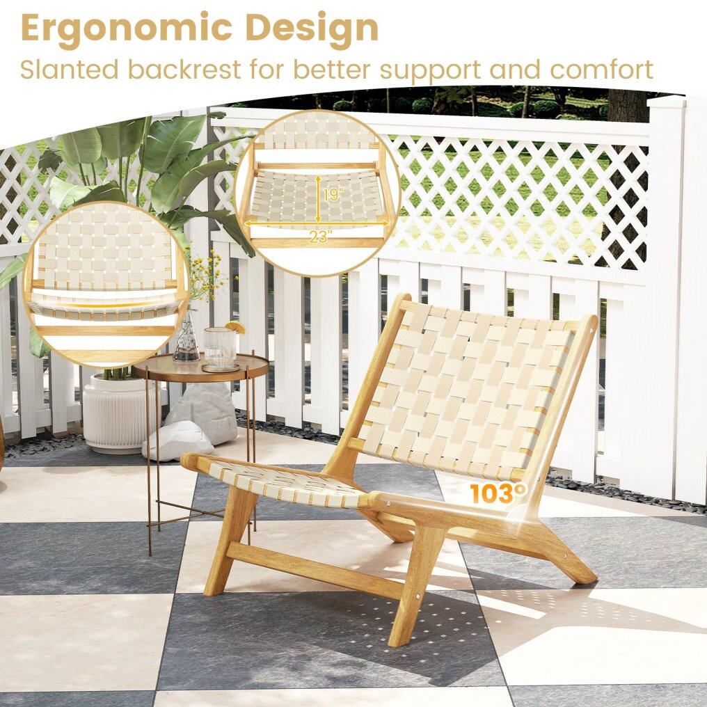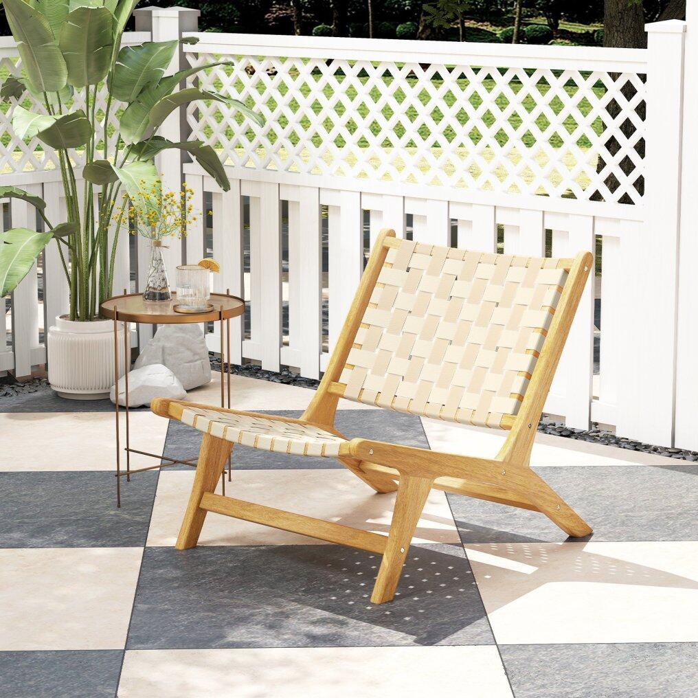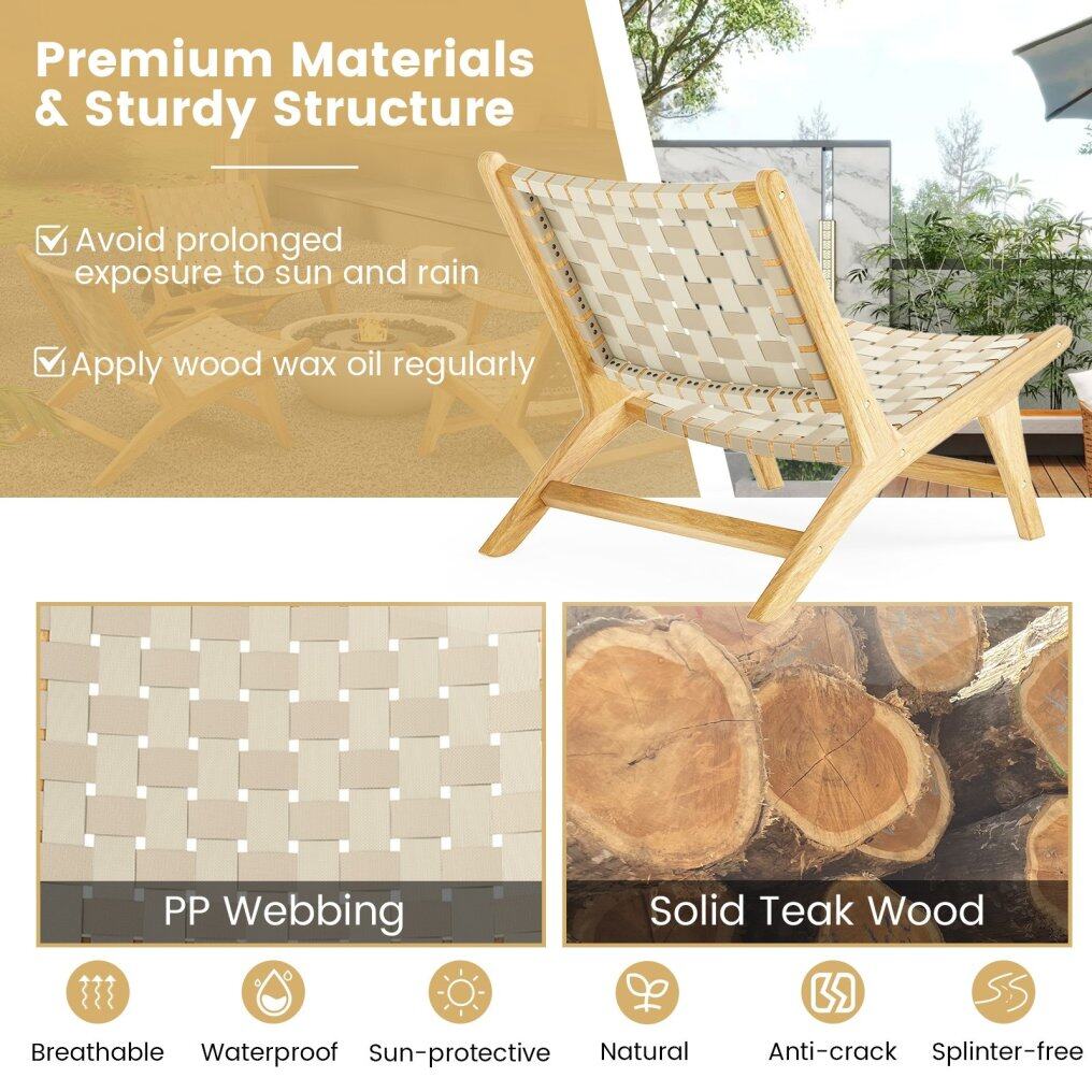 ● Solid Teak Construction: Crafted from natural and solid teak wood with splinter-free finish, this outdoor accent chair promises longevity and sturdiness. Reinforced by crossbars, the chair is capable of supporting up to 300 lbs.