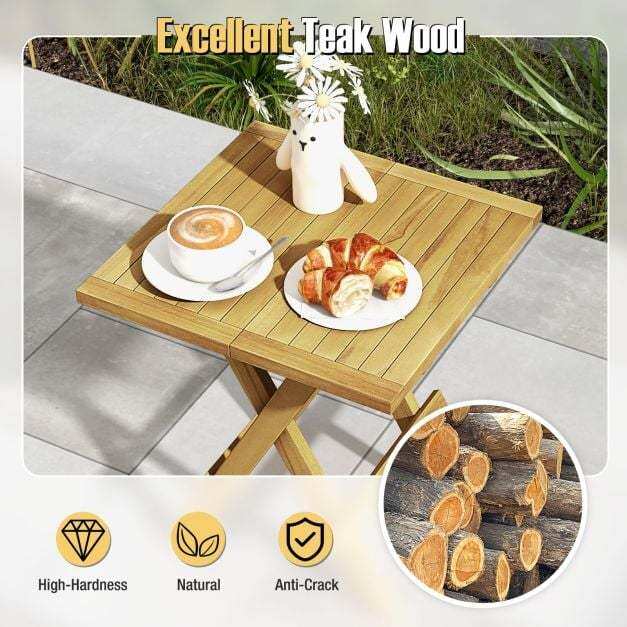 ● Natural Elegance: The natural grain of teak brings a touch of sophistication to your outdoor relaxing space. This square-shaped coffee table with exquisite details will serve as an attractive centerpiece to bring you much convenience.