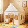 【Durable Materials】Made of thick PVC tubes, the kids play tent stays stable and won't bend easily. It's also covered with wear-resistant polyester and cotton fabric for long-lasting use.