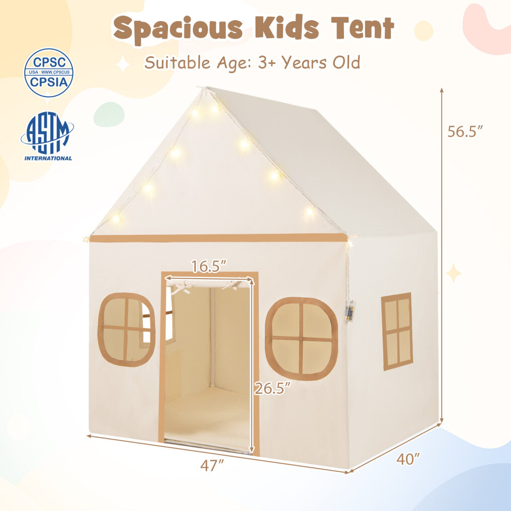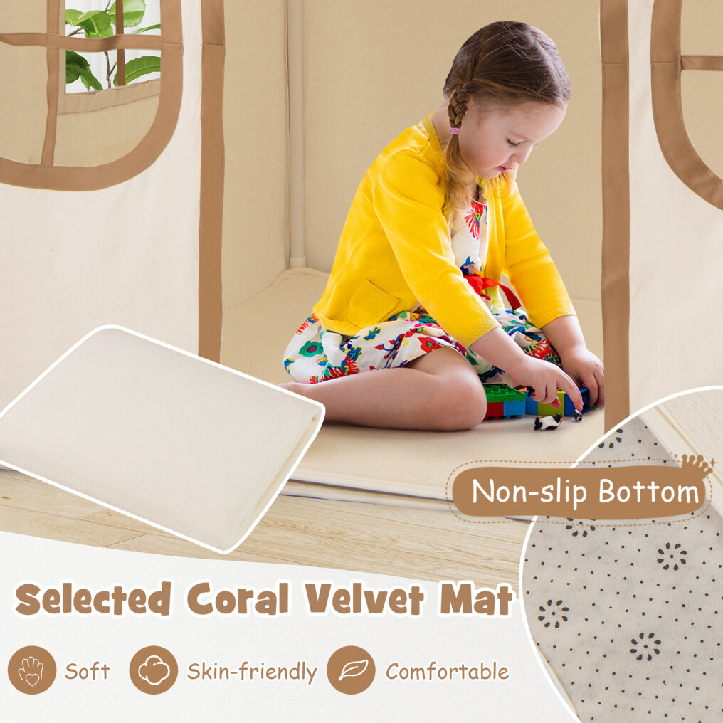 【Durable Materials】Made of thick PVC tubes, the kids play tent stays stable and won't bend easily. It's also covered with wear-resistant polyester and cotton fabric for long-lasting use.