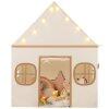 Measuring 120 x 101 x 143 cm (L x W x H), this play tent is spacious enough to accommodate 3 children. Selected PVC tubes and polyester cotton fabric ensure long-lasting use. The included padded mat is covered with coral velvet for optimal comfort. In addition, 4 windows and a roll-up door ensure a well-ventilated space for your little ones. Illuminated by charming stars, our tent creates a whimsical atmosphere that encourages imagination. In addition, the side storage pockets allow you to store toys, books, and other play accessories.