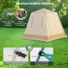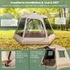 【1-Minute Quick Set-Up System】Equipped with an innovative fully automatic stand, this pop-up camping tent sets up instantly in 1 minute, without tools. Simply unfold the frame, extend the poles to raise the tent, and then secure the outer tent. It also comes with a convenient carry bag for easy storage and transportation.