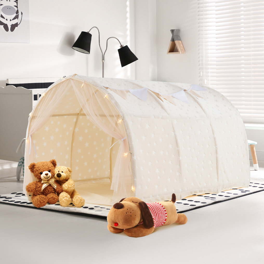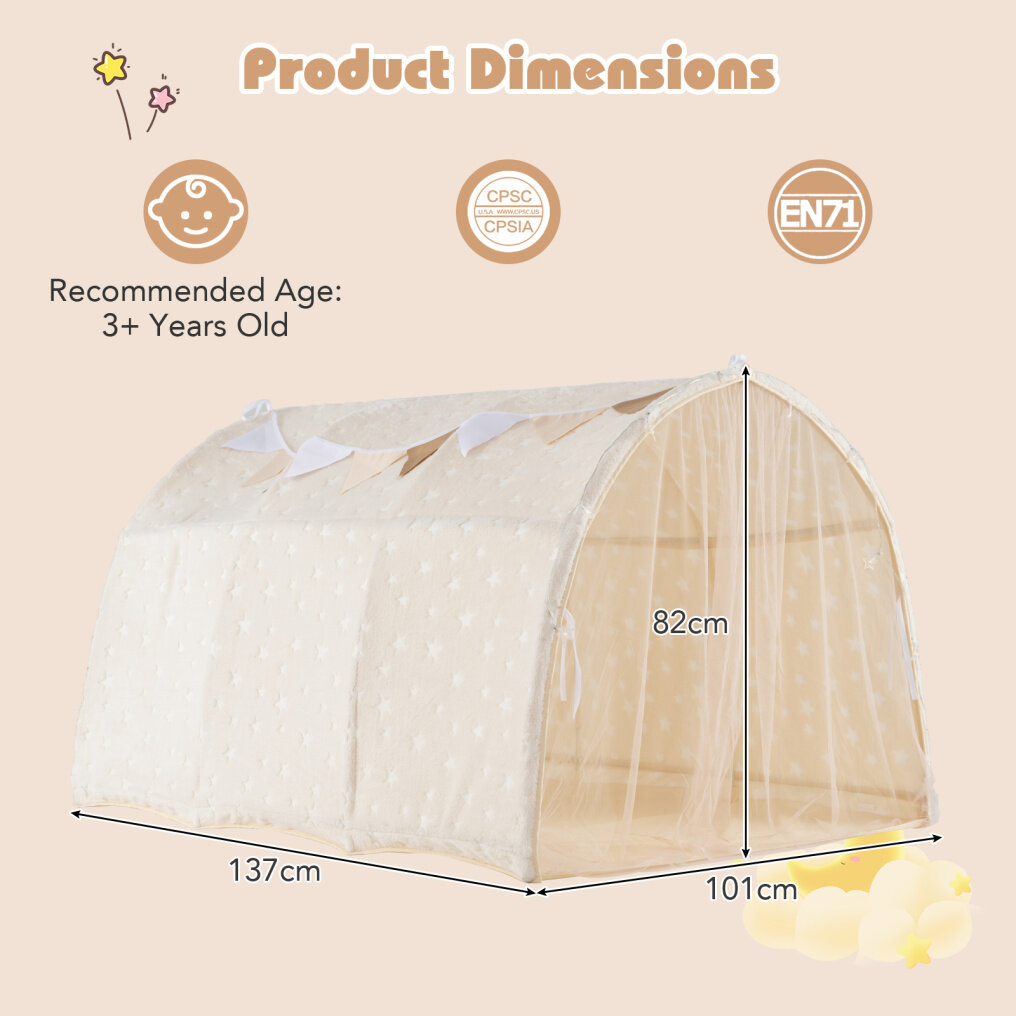 【Comfort and Privacy Combined】Equipped with double mesh curtains, the play tent offers your child both privacy and air circulation while sleeping. The magical playhouse is made of flannel, a material designed to provide warmth, comfort, and breathability for a cozy sleep experience.