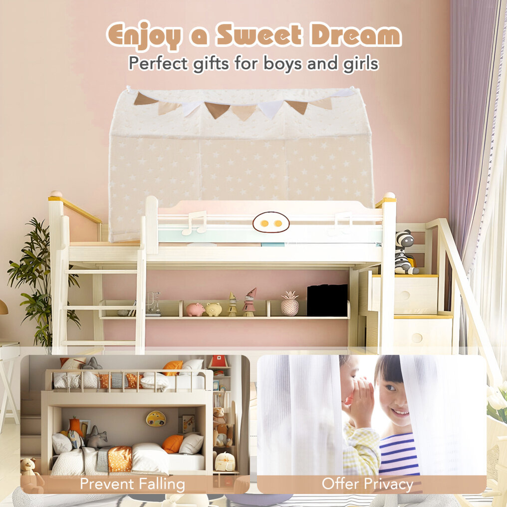 【Versatile 2-in-1 Design】The bunk bed tent is 101 cm wide and fits perfectly over a single bed. It provides a safe environment to prevent children from falling out, ensuring a peaceful sleep. Additionally, the tunnel tent serves as a gateway to a world of play, stimulating your child's creativity.