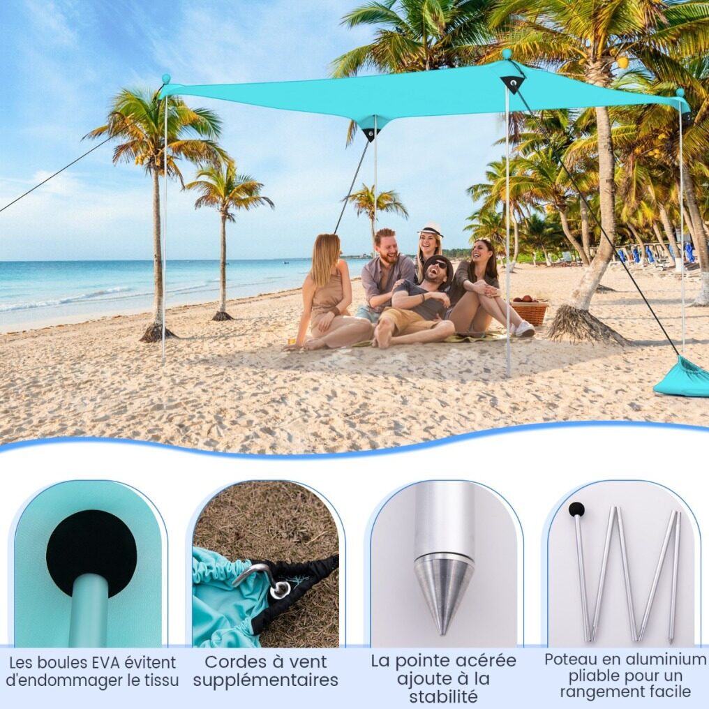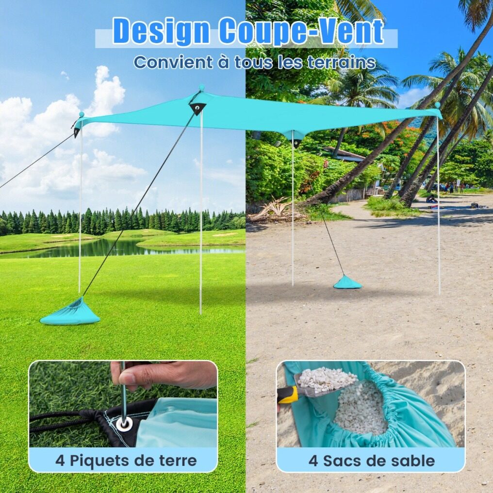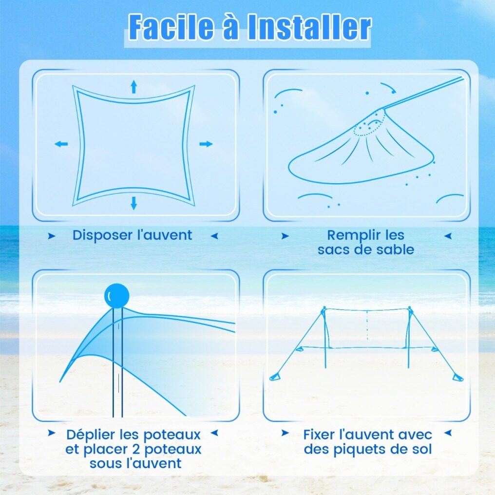 Flexible and easy assembly: The portable beach tent offers instant setup, where you just need to spread the roof, fill the sandbags and then support the shelter with poles. You can also vary the placement by changing the number of poles to create the ideal setup.