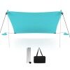 Enjoy the beauty of nature with our portable beach family shelter. Made of tear-resistant polyester lycra, the beach canopy offers a stretch that meets your space needs while promising superior durability. Thanks to the wind ropes and 4 sturdy ground pegs, the family beach shelter stays in place. The foldable support poles are space-saving and easy to store. Equipped with a carry bag, the 2.5kg lightweight outdoor sun shelter is portable and suitable for camping, picnic or fishing. In addition, various placement methods are available by changing the number of poles.