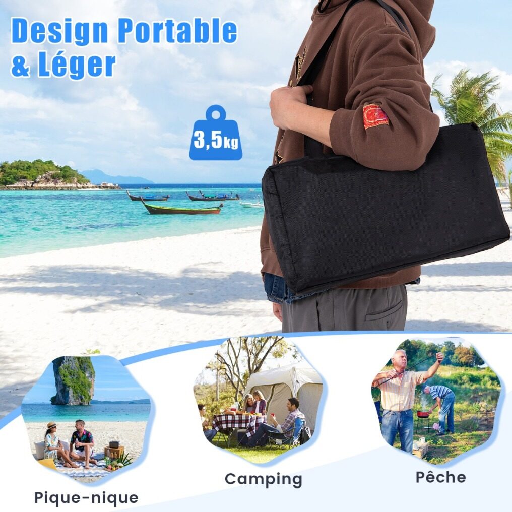 Portable and Versatile Design: The foldable support poles and removable roof can be stored in the included carrying bag, allowing you to effortlessly take the 2.5kg lightweight beach canopy anywhere. The portable design allows for wide use in the backyard, beach or lake.