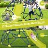 This climbing dome with slide is a perfect activity center for 3-12 years old kids to crawl, climb and slide. It can be used in your jungle gym, backyard, garden, park and more to improve kids' motor skills, social skills, balance ability, hand-feet coordination and critical thinking. Plenty of steel pipes consist of the whole frame and weather-resistant fabric consists of the platform for long-term use. And the whole playground can withstand a weight up to 400 lbs, which holds up to 3 kids at the same time. Besides, to add more security, there are safety handrails and rounded edges. Extra ASTM and CPSIA certifications add excellent security.