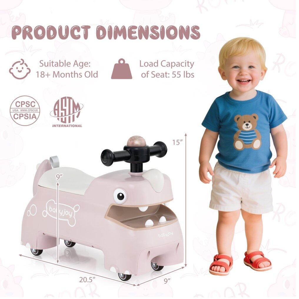 Ride with Endless Fun: This toddler ride on toy features 6 engaging sounds, including 3 alarms, 2 melodies, and a horn. Together with flashing LED lights and press-able teeth, each press ignites delight, making every ride a fun-filled adventure that keeps little ones engaged and entertained.