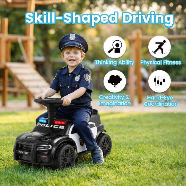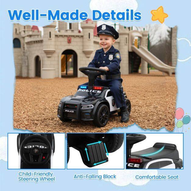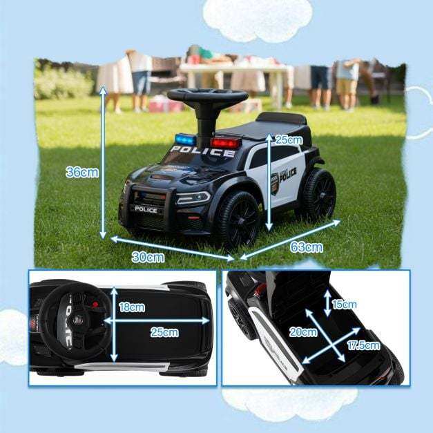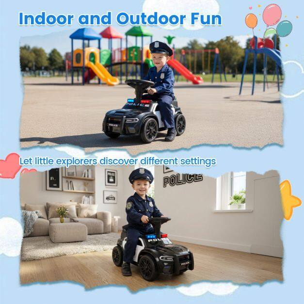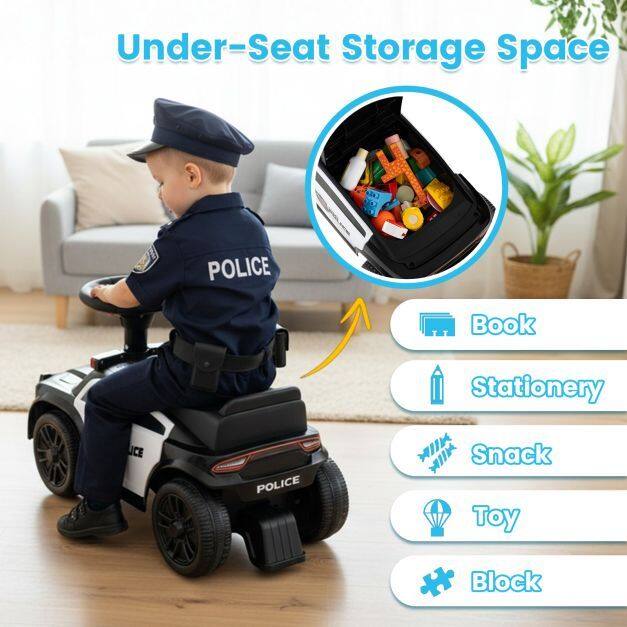 ● Thoughtful Under-Seat Storage: The toddler sliding car comes ingeniously equipped with under-seat storage, allowing your little officer to safely stow away their favorite toys or snacks. Plus, this feature makes it convenient to keep play essentials close at hand during their patrol around the park or home.