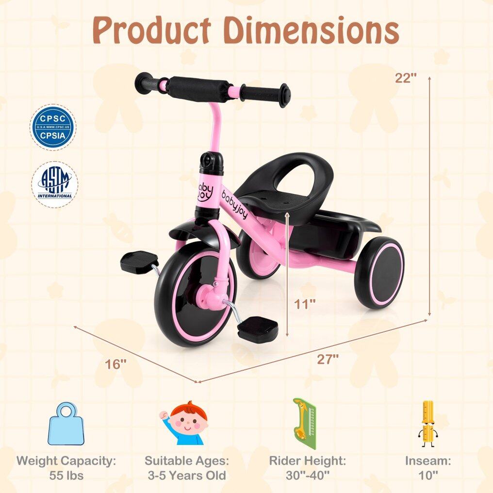 ● Cozy & Convenient Design: This toddler trike features an ergonomic seat that can be adjusted as your child grows. Moreover, the backrest provides extra comfort and doubles as a convenient carrying handle for parents.