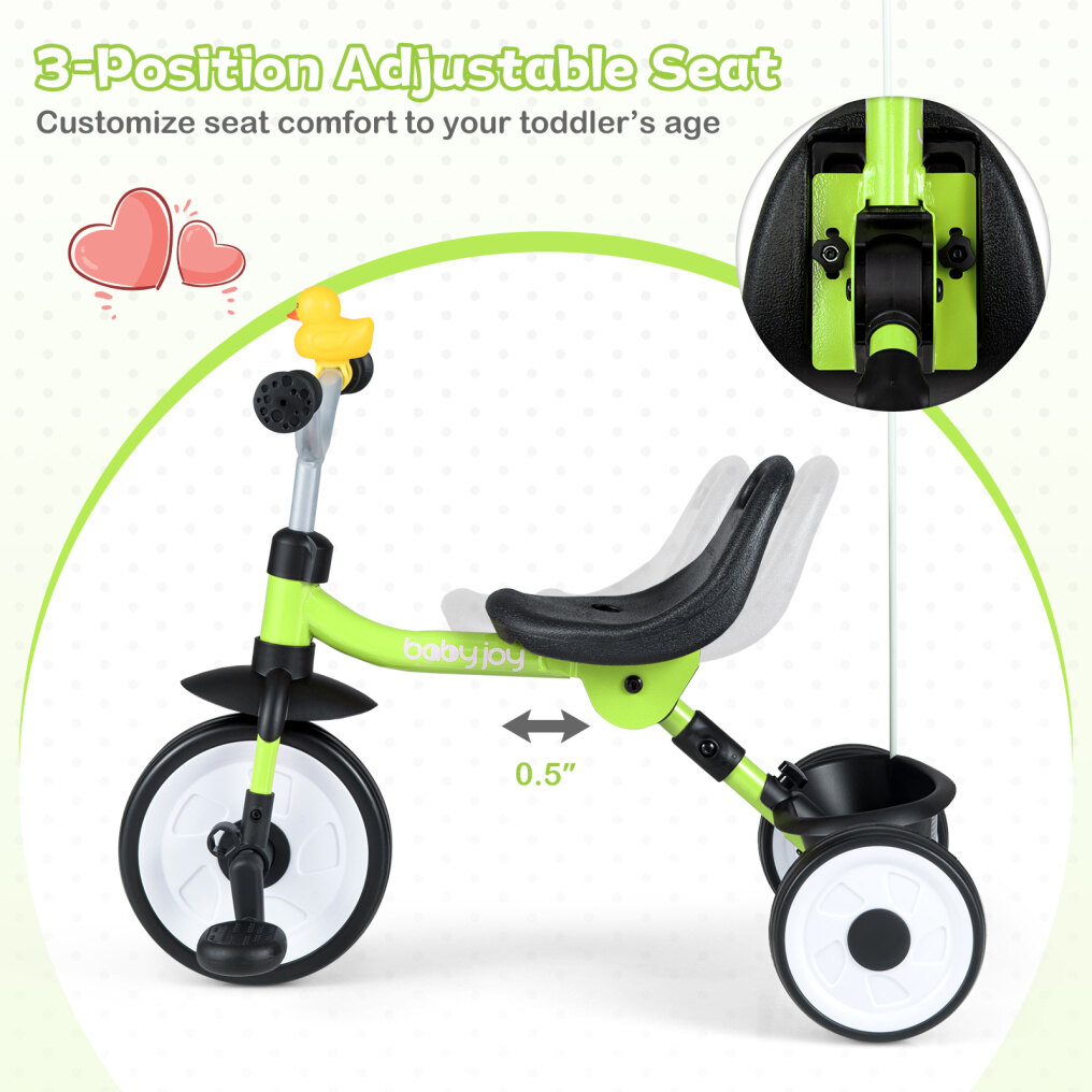 Grows with Your Child: The toddler bike features a 3-position adjustable seat and removable pedals. Effortlessly transform it from an early balance bike to a classic tricycle, perfectly suited for toddlers from 1 to 3 years old.