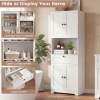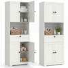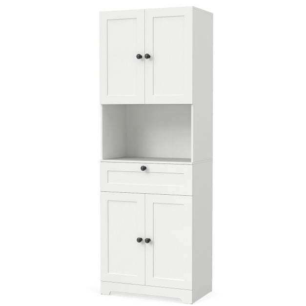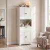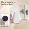 【More Details on the Tall Cabinet】The cabinet features easy-grip handles for effortless access. Soft-close hinges ensure quiet and secure opening. Additionally, the smooth surface is easy to clean.