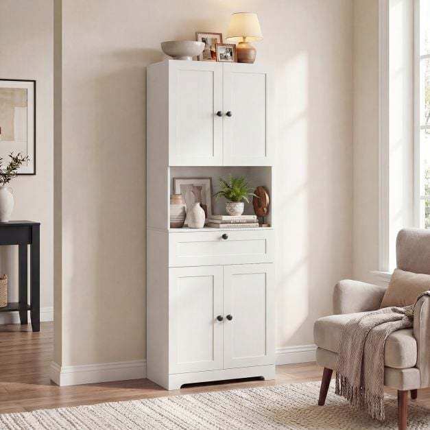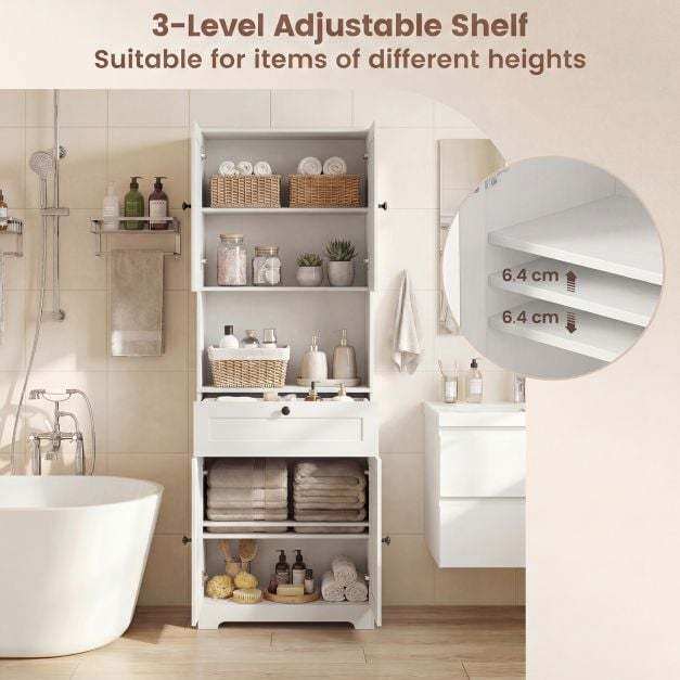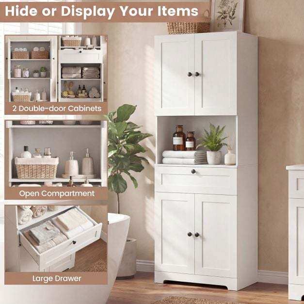 【Hide or Display Your Items】This 171.5 cm tall bathroom cabinet features two double-door cabinets, one compartment, and one drawer, offering both closed and open storage options. It will be a beautiful storage solution for your bathroom essentials.