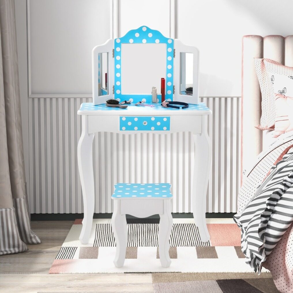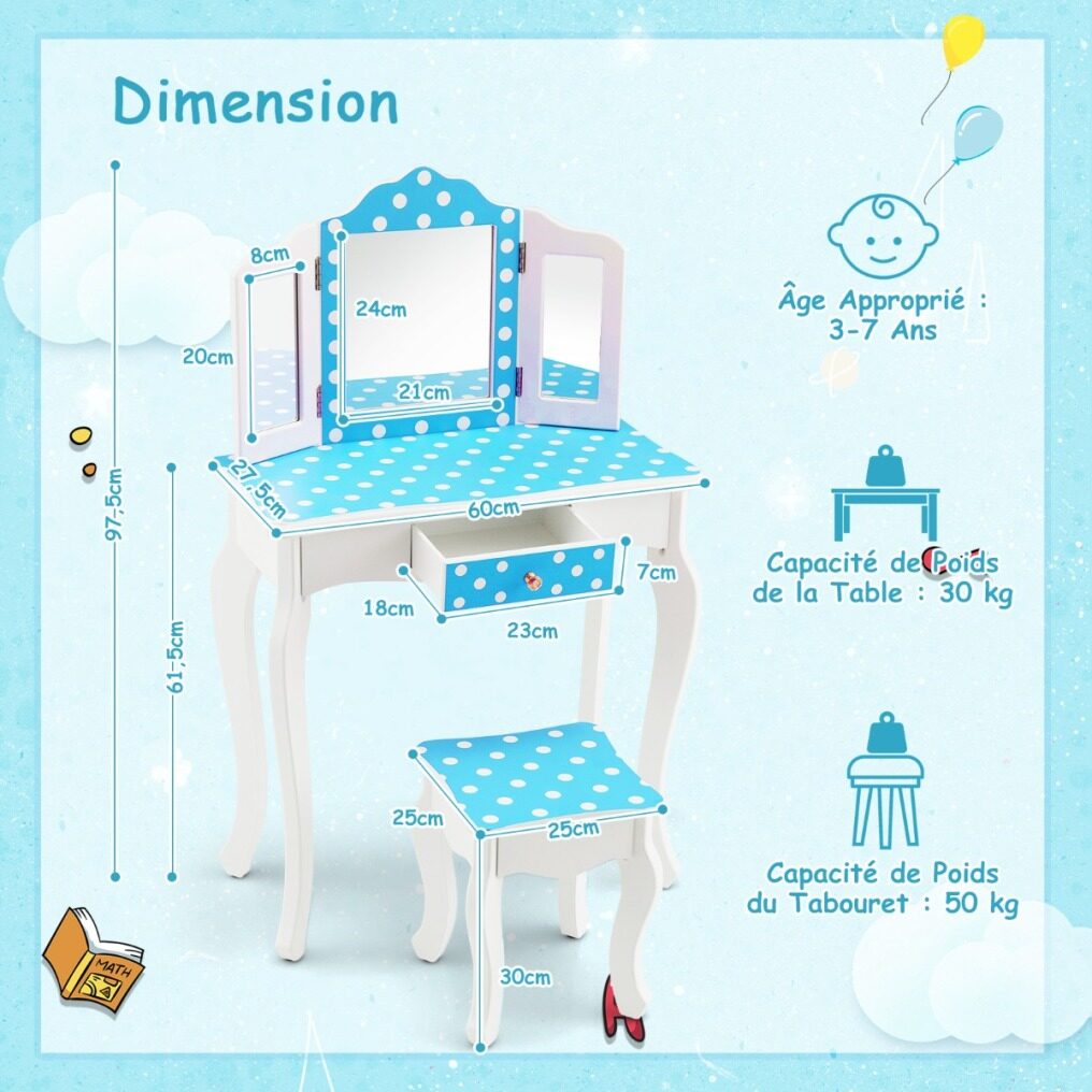 Perfect gift : With a beautiful zebra print/leopard print/polka dot pattern, this dressing table set is an ideal gift for children. Convenient drawer makes it easy to store a variety of items