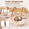 Unique Handmade Cradle: This cute cat tree features a comfortable cradle that gently rocks to soothe your beloved pet, perfect for curling up and napping. It's woven with rope, strengthened by sturdy plywood and a soft cushion.